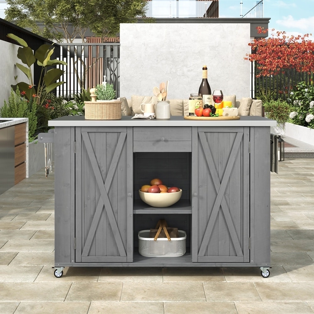 Petw MDF Rolling Kitchen Island with Drop Leaf and Power Outlet(57-in x30-in x36-in)