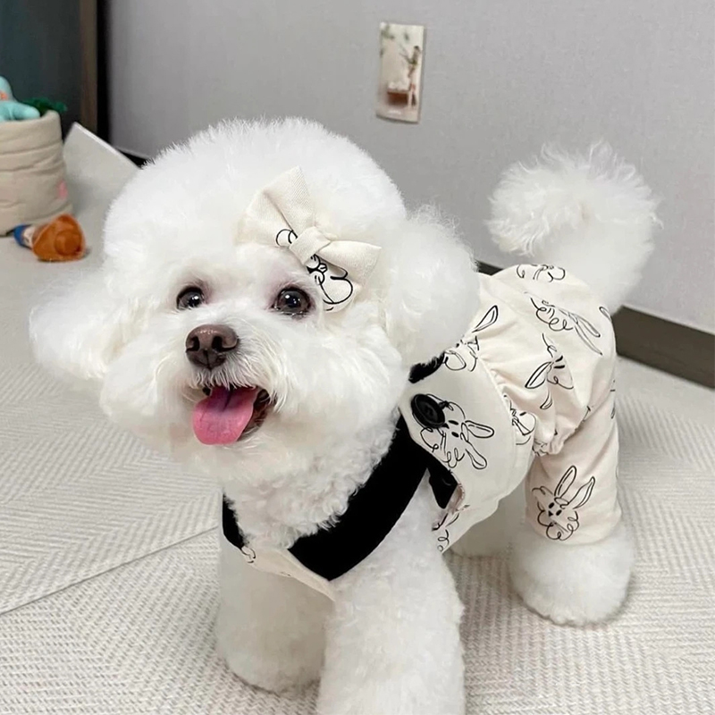 Christmas Pet Apparel: Rabbit Print Dog Sling Dress & Jumpsuits For Bulldogs & Cats skirt s