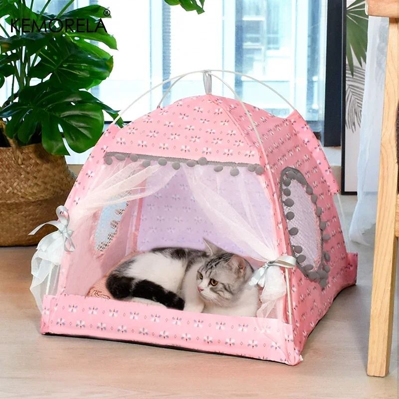 Floral Pet Tent Bed For Cats And Small Dogs With Semi Enclosed Design s pink