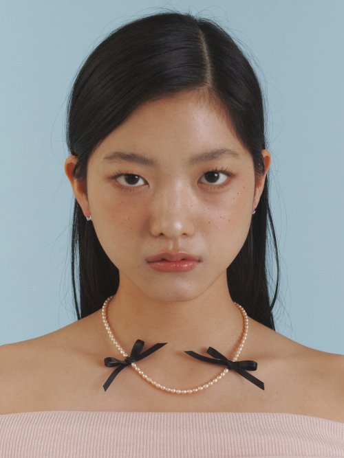 lovememonster 2 Love Ribbon Pink Pearl Necklace