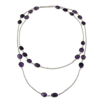 Violet Princess,'Amethyst Sterling Silver Long Necklace Handmade in India'