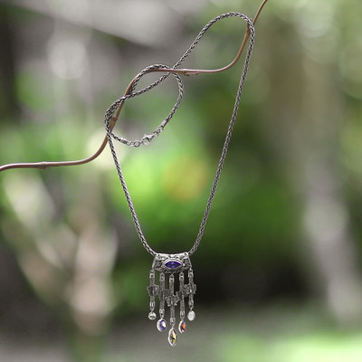 'Multi-Gemstone Sterling Silver Pendant Necklace from India'