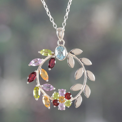 Luminous Beauty,'Sterling Silver and Multigem Pendant Necklace from India'