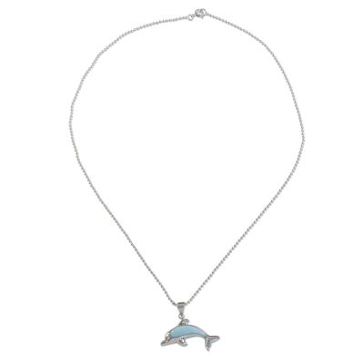 Dolphin Leap,'Larimar and Sterling Silver Leaping Dolphin Pendant Necklace'