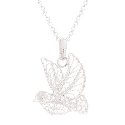 Peace and Grace,'Handcrafted Sterling Silver Filigree Dove Pendant Necklace'