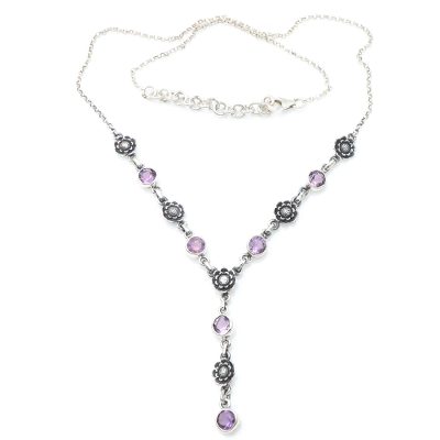 Imperial Sunflowers,'Sterling Silver and Amethyst Floral Pendant Necklace'