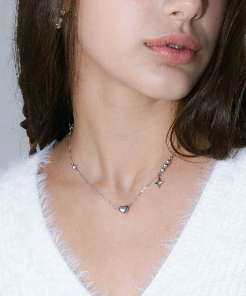 noonoofingers Heart Planet Pearl Necklace Rose Gold Pearl Necklace