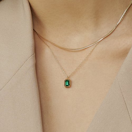 lunne 14k Square Marquise Emerald Necklace #LFN01