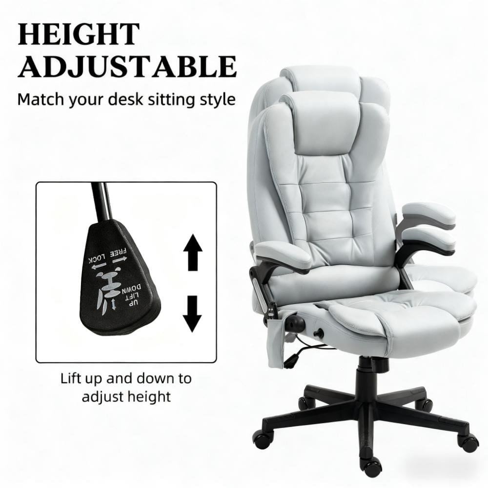 Office Chair with Footrest-Ergonomic Computer Chair with Extra Lumbar Support Pillow, Thick Leather