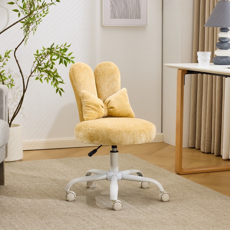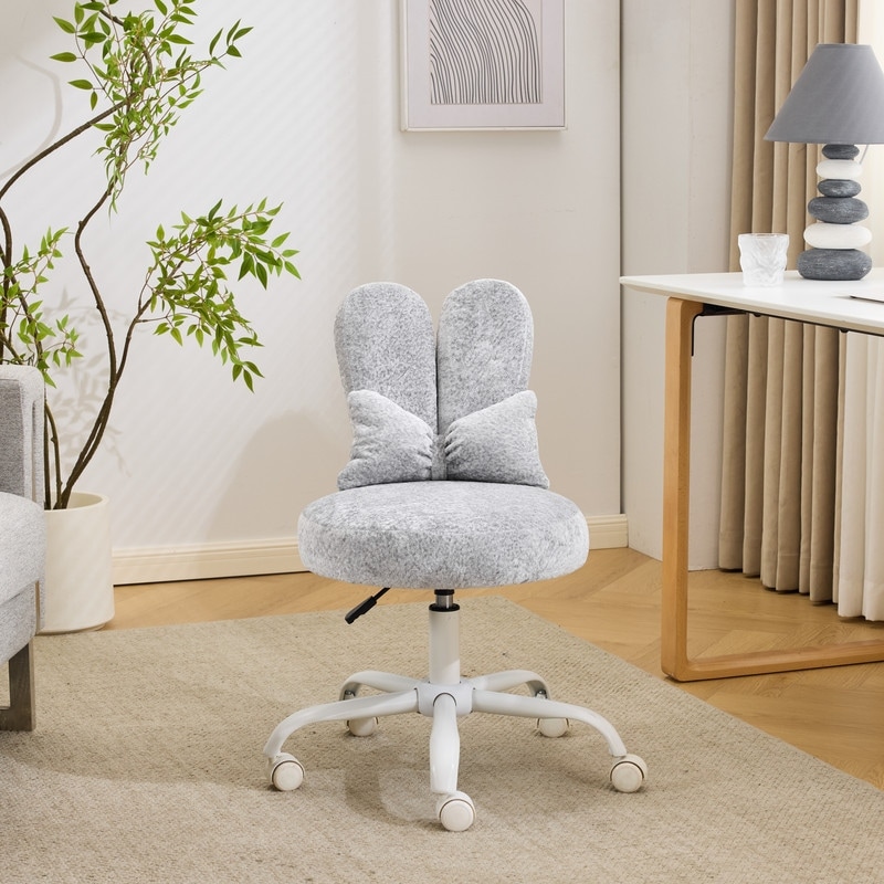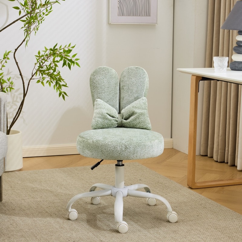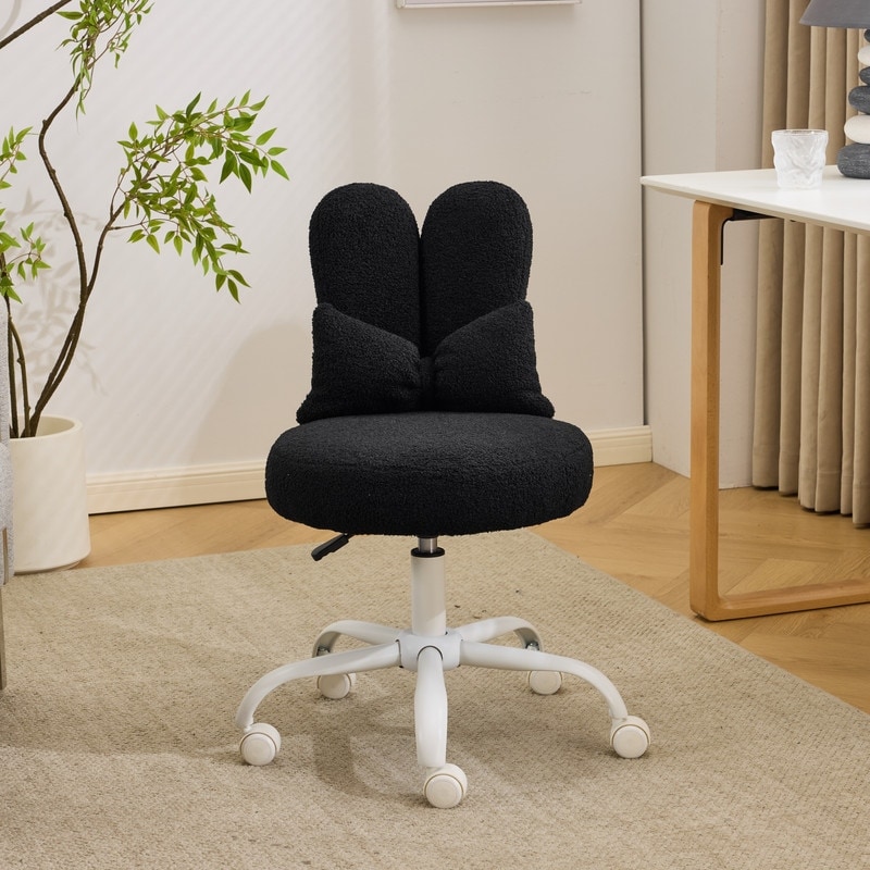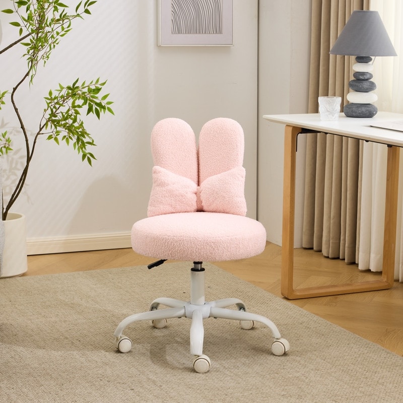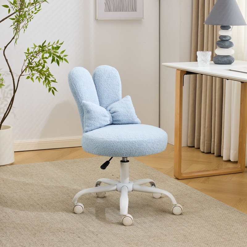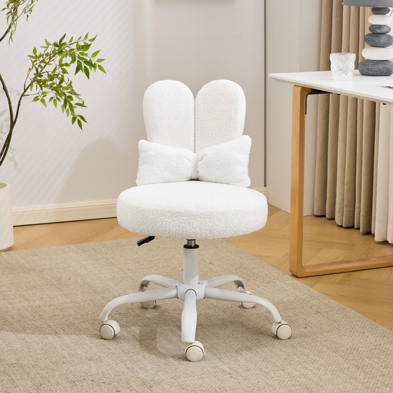 Adjustable Bow Teddy Fabric Bunny Ear Swivel Accent Chair Office Chair For Home Office Vanity - N/A