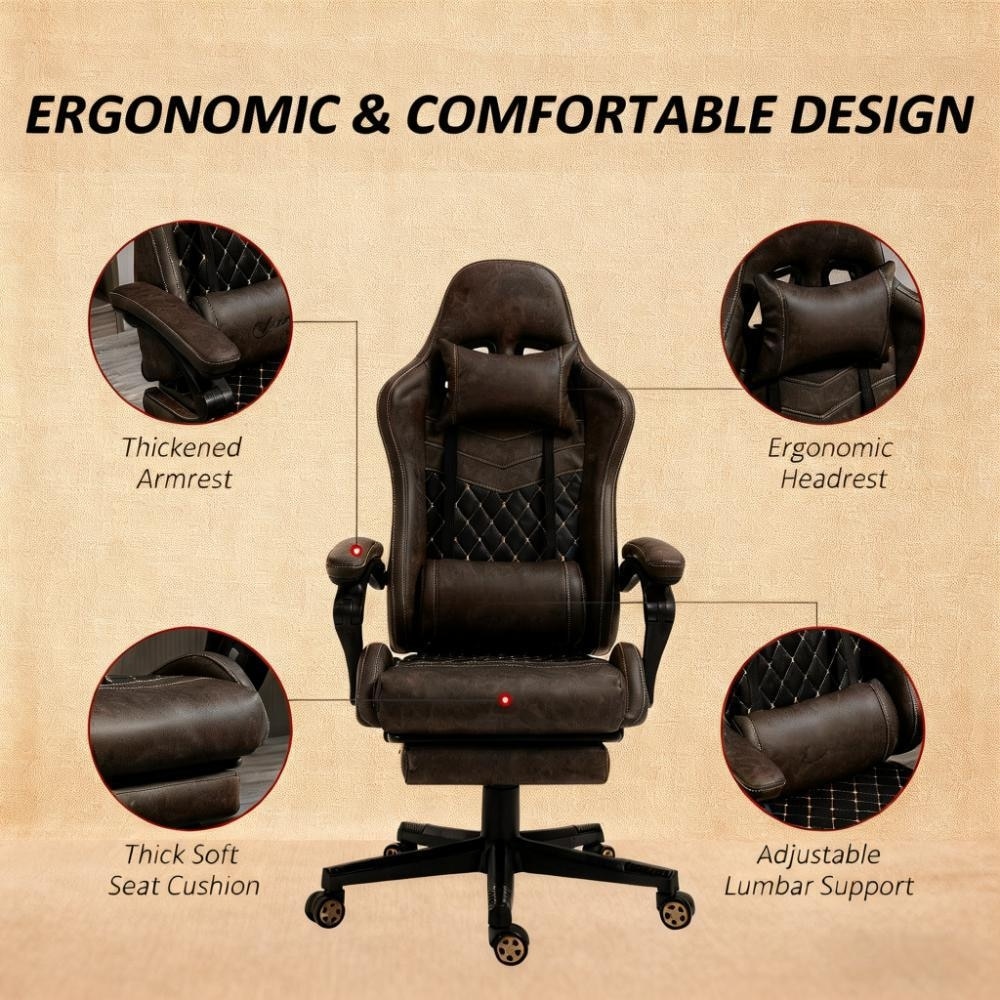PU Leather Office Gamer Chair High Back Swivel Recliner with Footrest