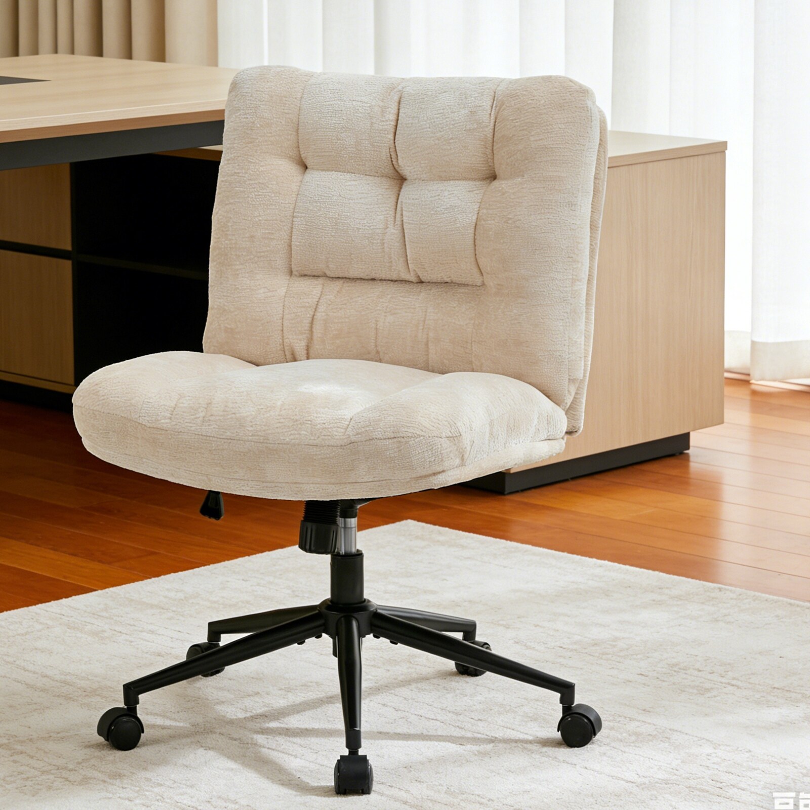 Chenille Swivel Armless Office Chairs with Wheels, Cross-Legged Vanity Chair