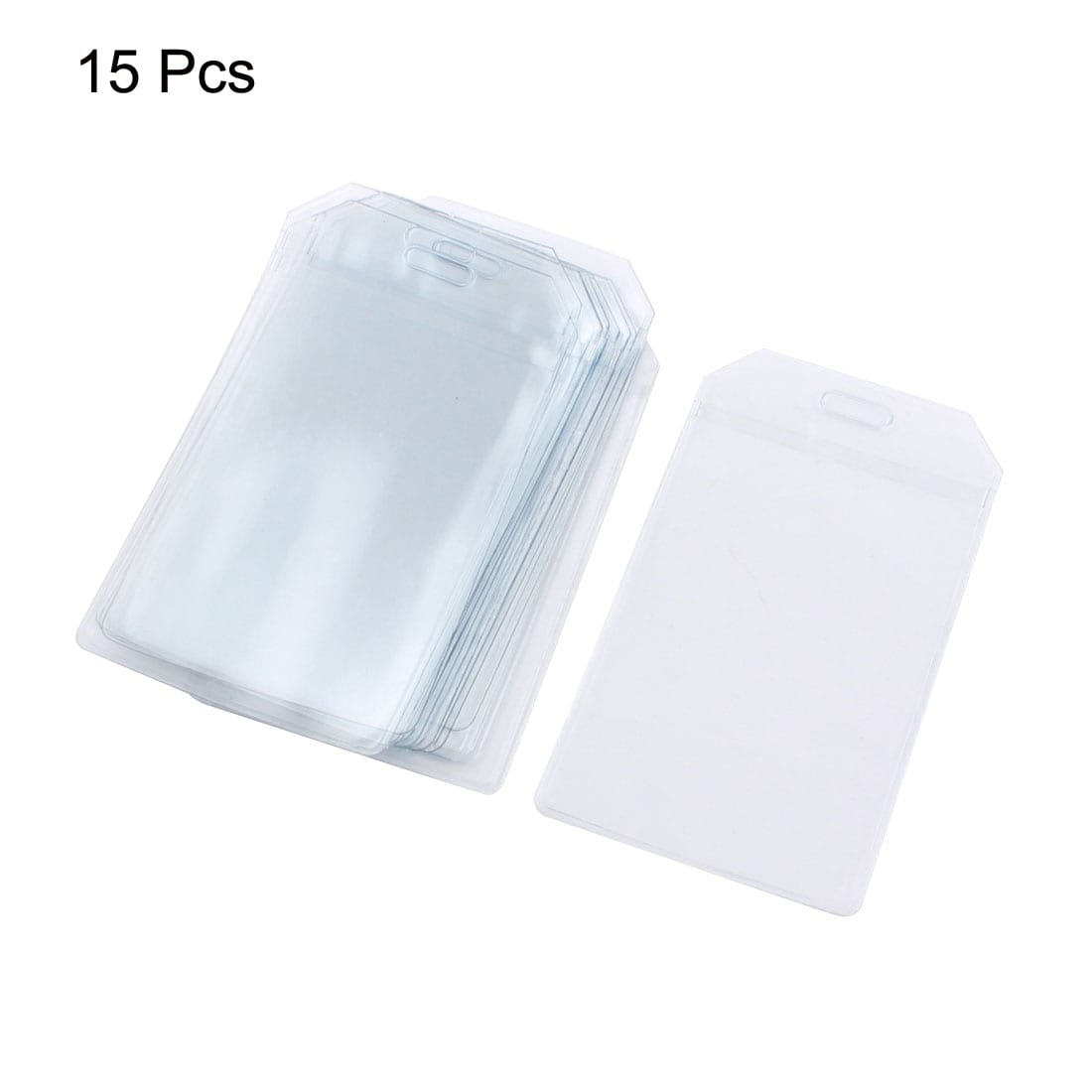 15 Pcs Office Clear Plastic Vertical Name Tag ID Card Badge Holders - 15 Pcs