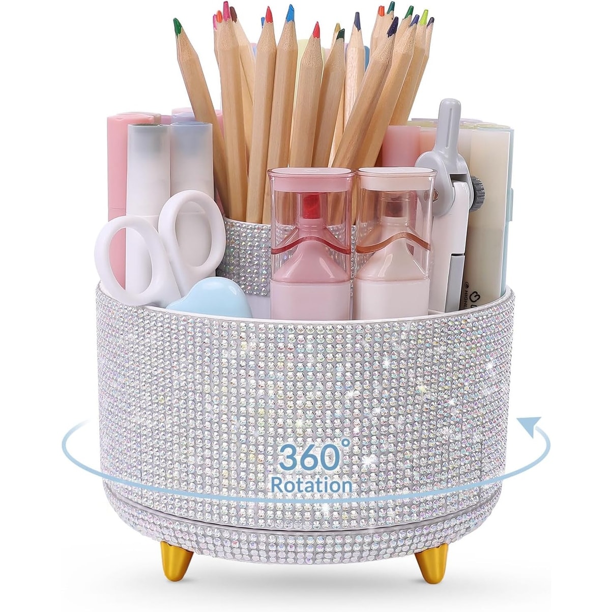 360 Degree Rotating Plastic Desktop Pen Holder with 5 Slots - N/A