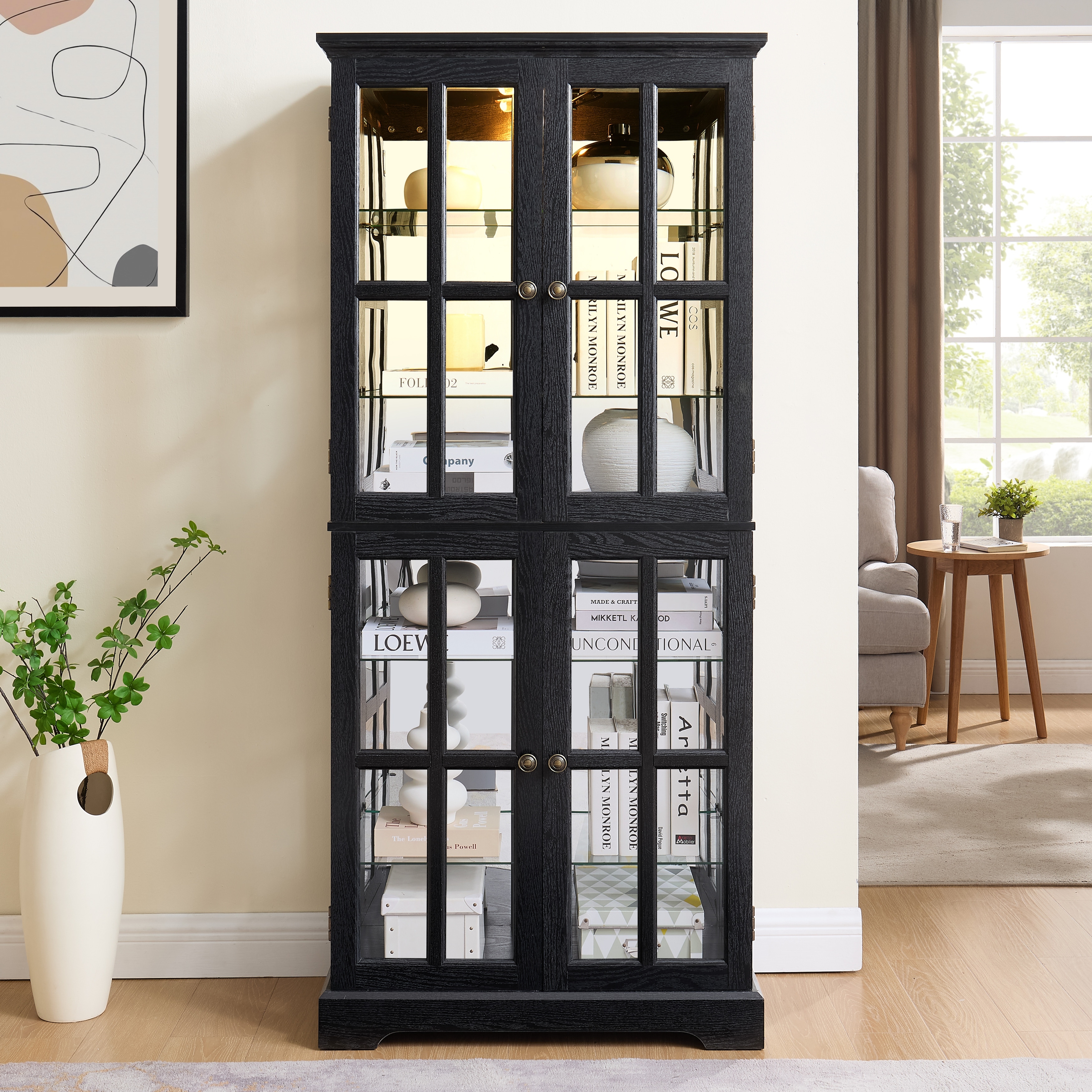 Curio Display Cabinet, Antique Display Cabinet with Glass Doors Adjustable Shelves, E26 Bulb Included BLK