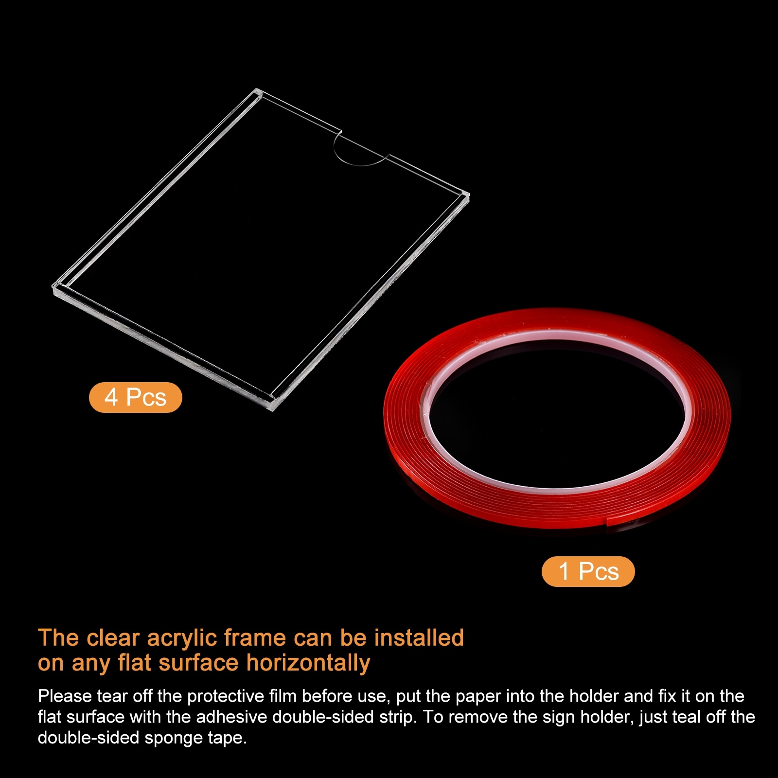 Clear Acrylic Sign Holder Picture Paper Vertically Frame with Double Sided Adhesive Strip for Home, Office - 5 x 3.5 inch
