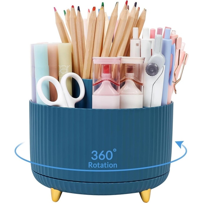 360 Degree Rotating Plastic Desktop Pen Holder with 5 Slots - N/A