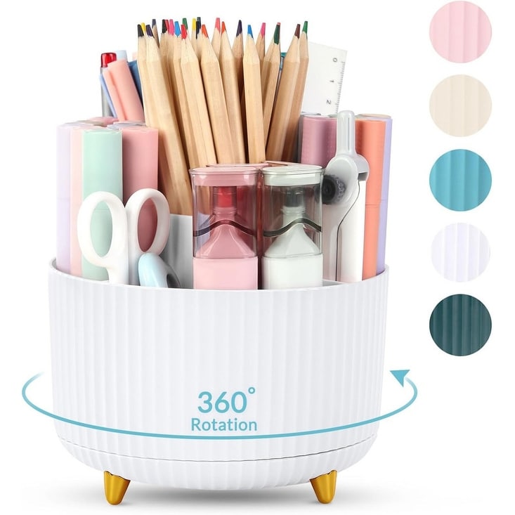 360 Degree Rotating Plastic Desktop Pen Holder with 5 Slots - N/A