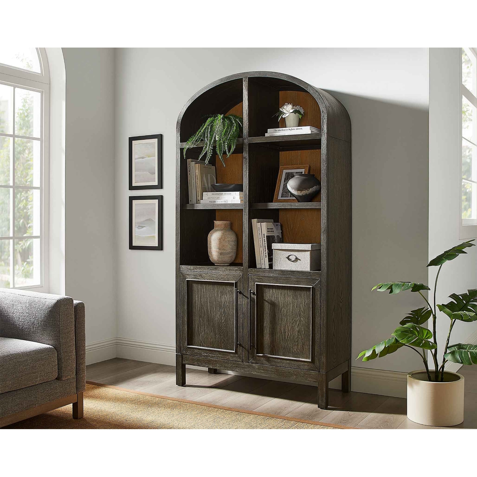 Modern Wood Arched Display Cabinet/Bookcase, Office Shelving, Storage Cabinet, Fully Assembled, Black - 40"w x 76"h x 17"d