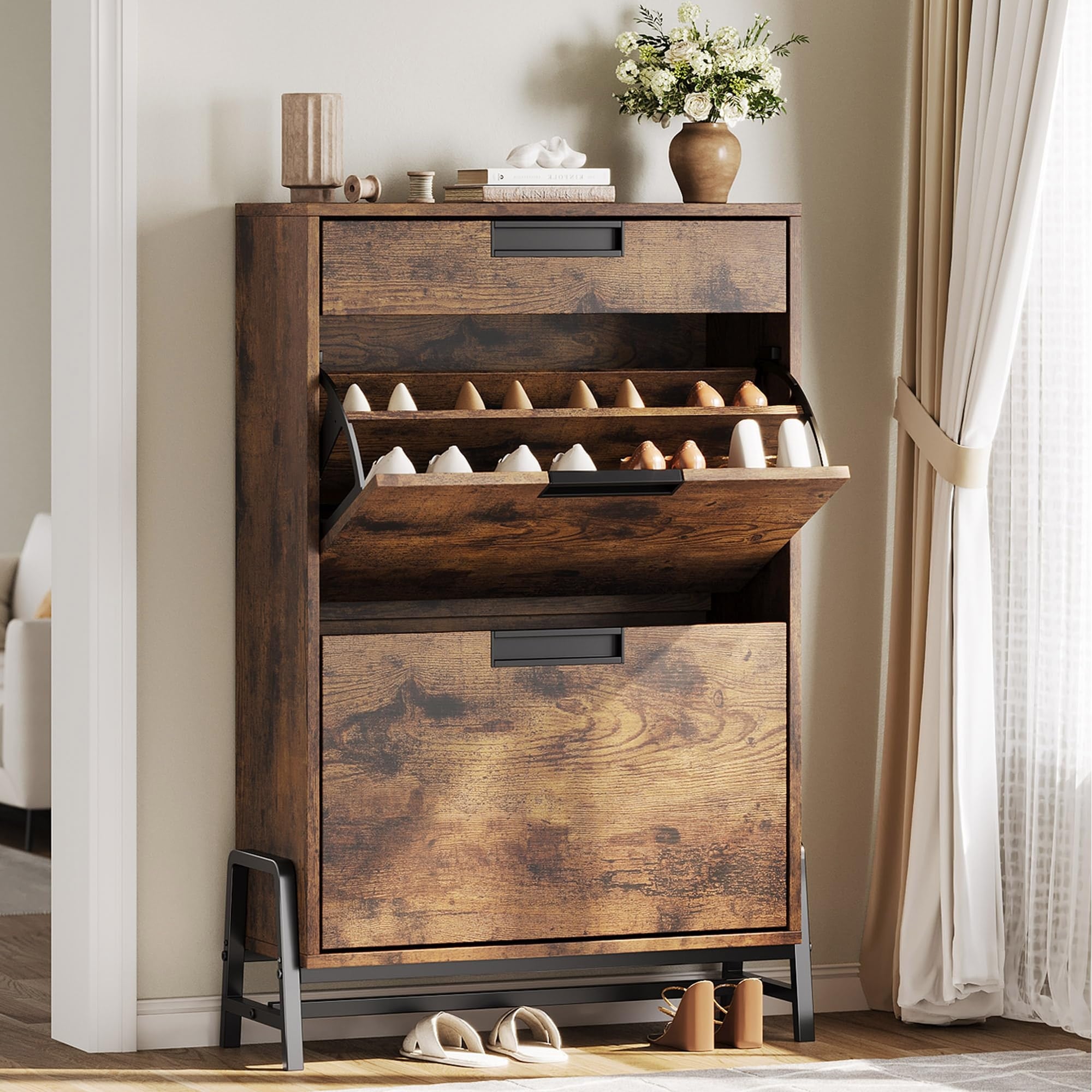 Shoe Storage Organizer with 2 Flip Drawers for Entryway Foyer