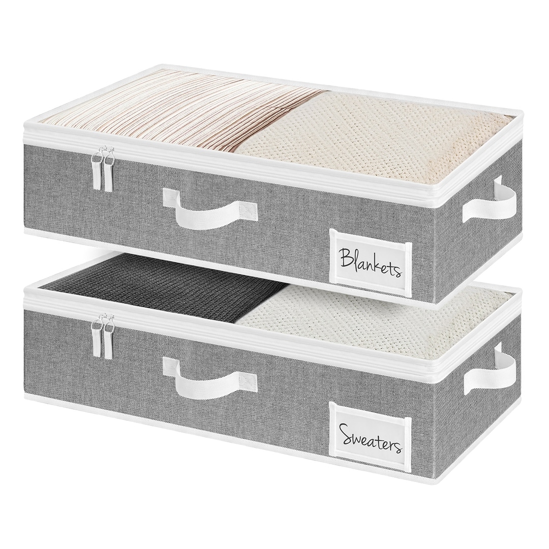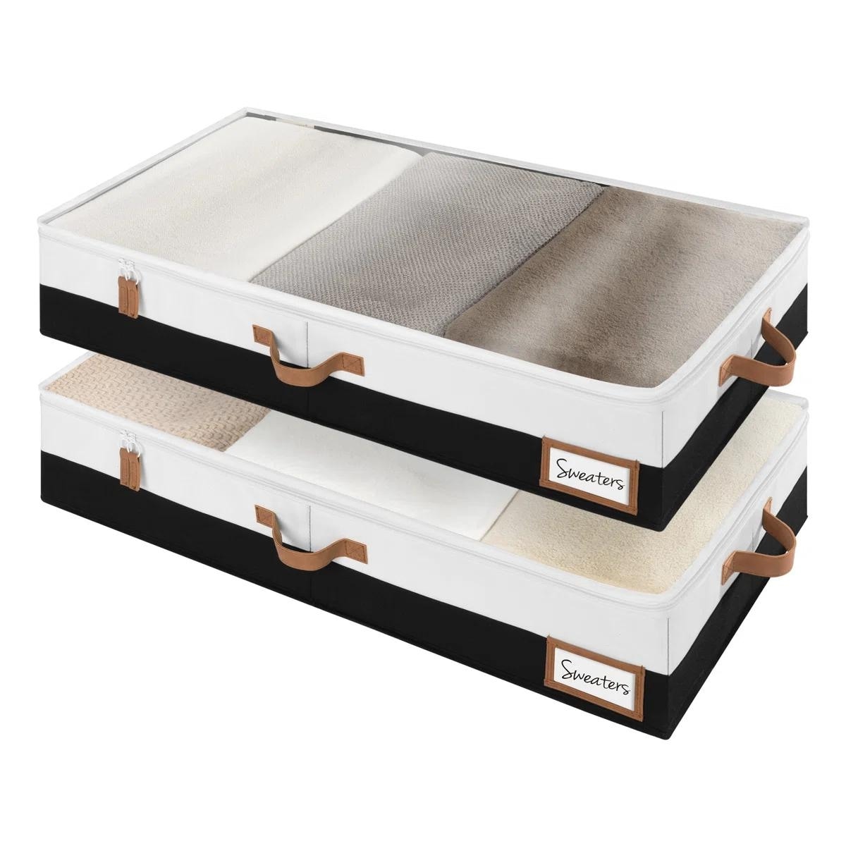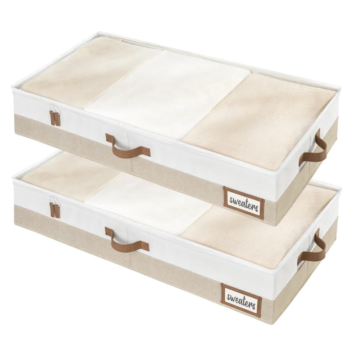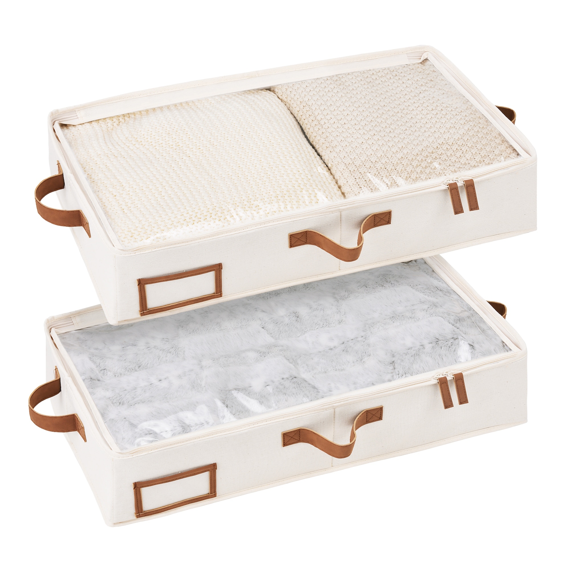 Underbed Storage Box with Clear Window for Clothes, Blankets, Shoes, 6''H x 33''W x 17''D, Brown/White, Set of 2