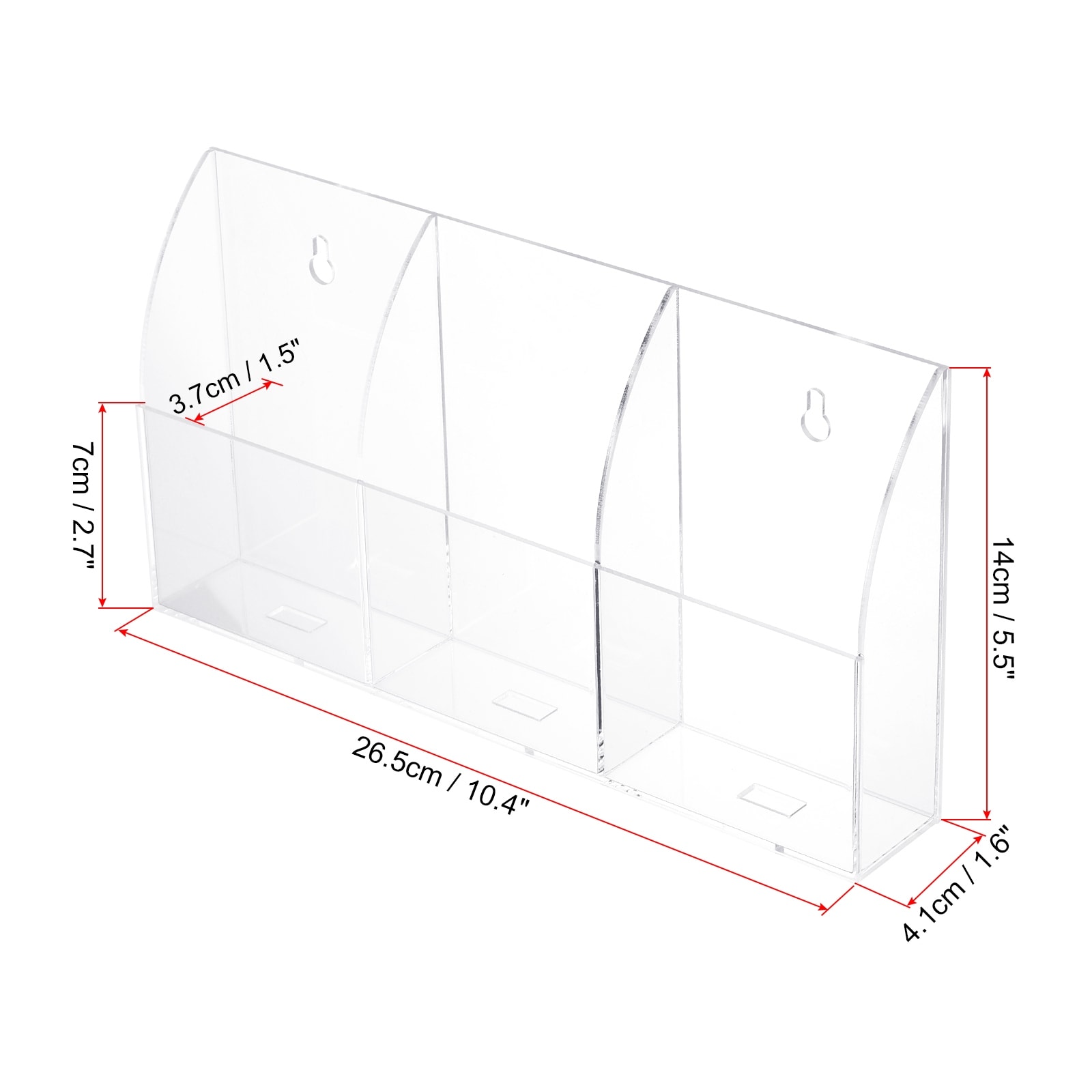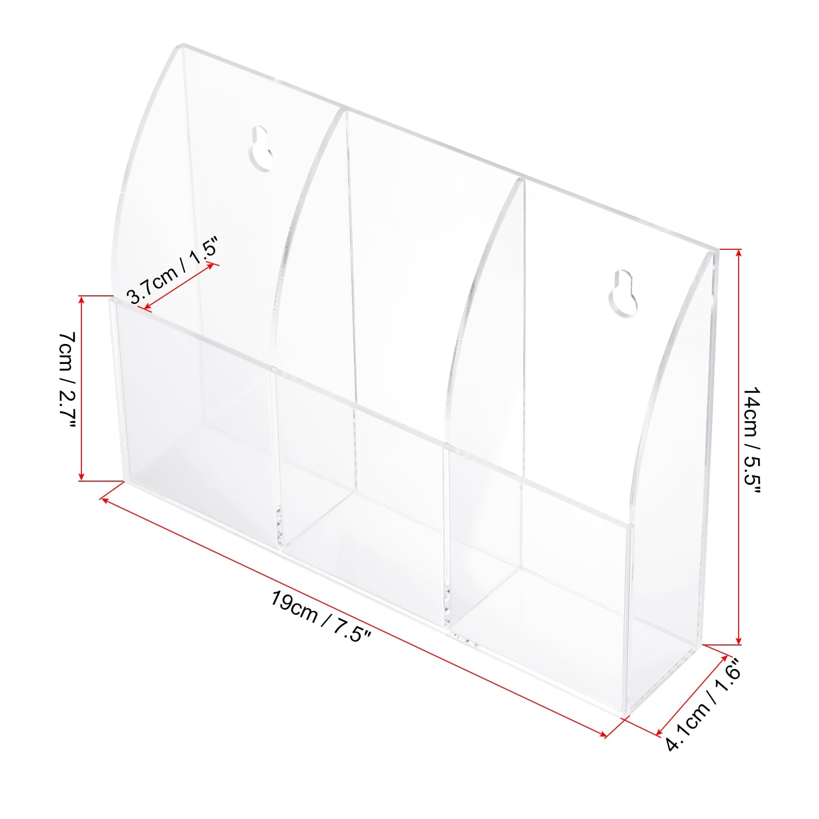 Remote Control Holder Acrylic 3 Slot Wall Mounted Charging Phone Holder Remotes Stand Rack for Home Office - Clear