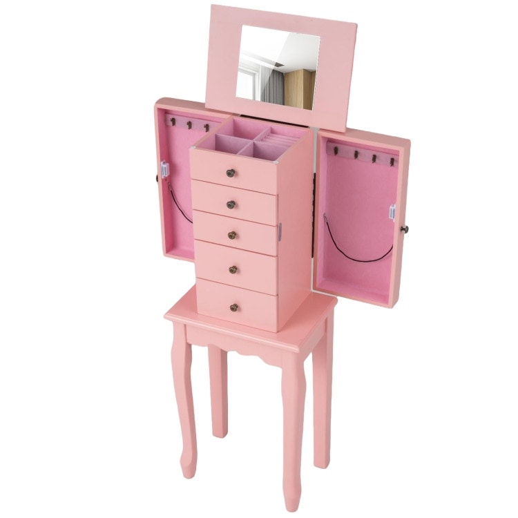 2 Colors Armoire Storage Standing Jewelry Cabinet with Mirror - 13" x 9" x 34" (L x W x H)