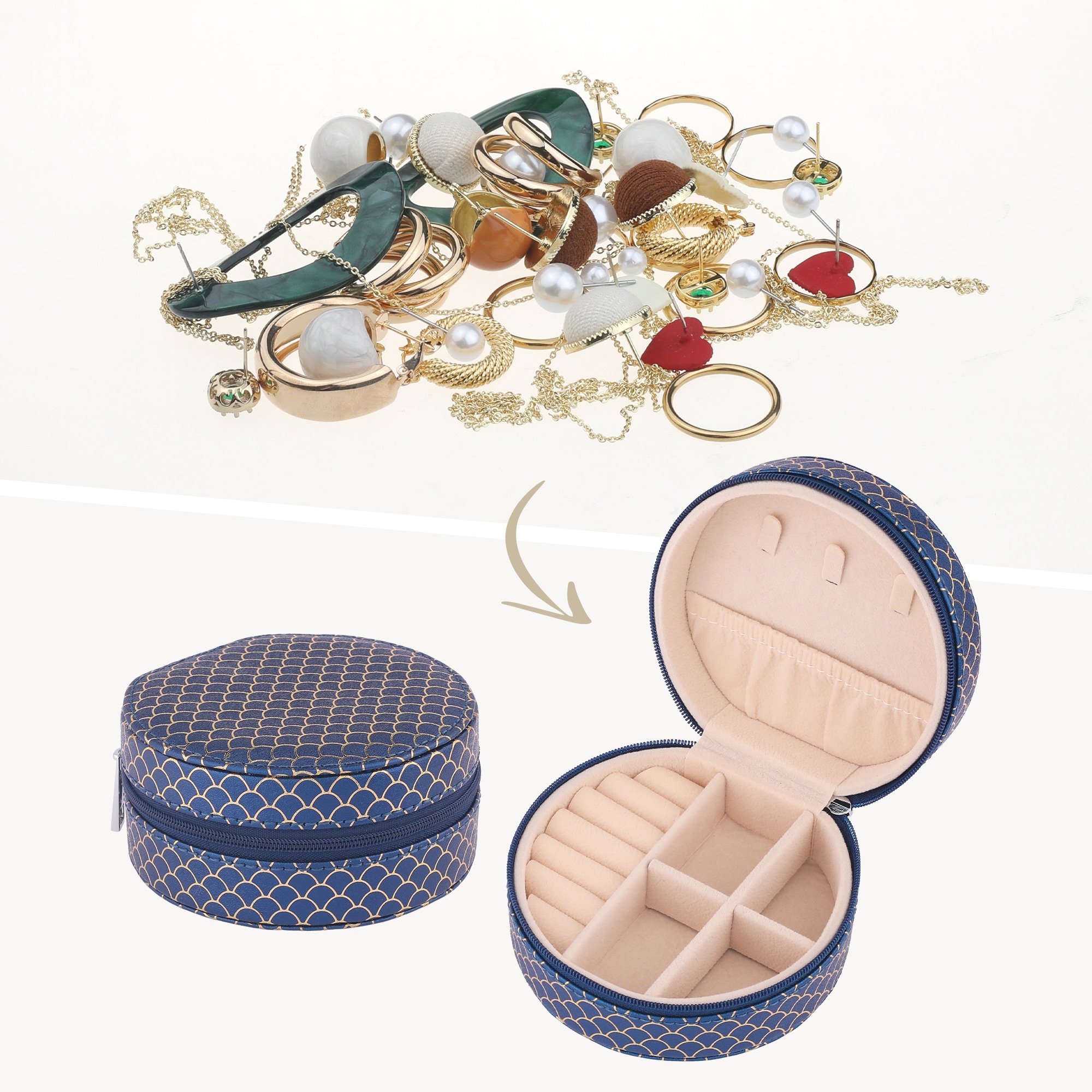 Mini PU Leather Jewelry Box for Women, Portable Jewelry Organizer Case Storage Display Holder for Earring Ring 4x4x2in - 4*4*2in