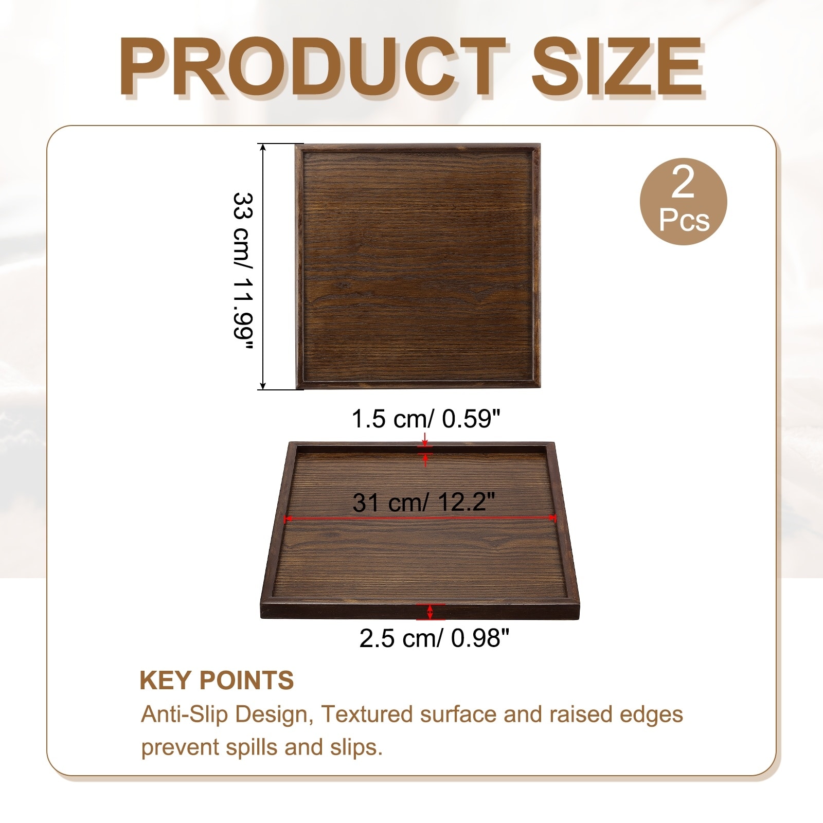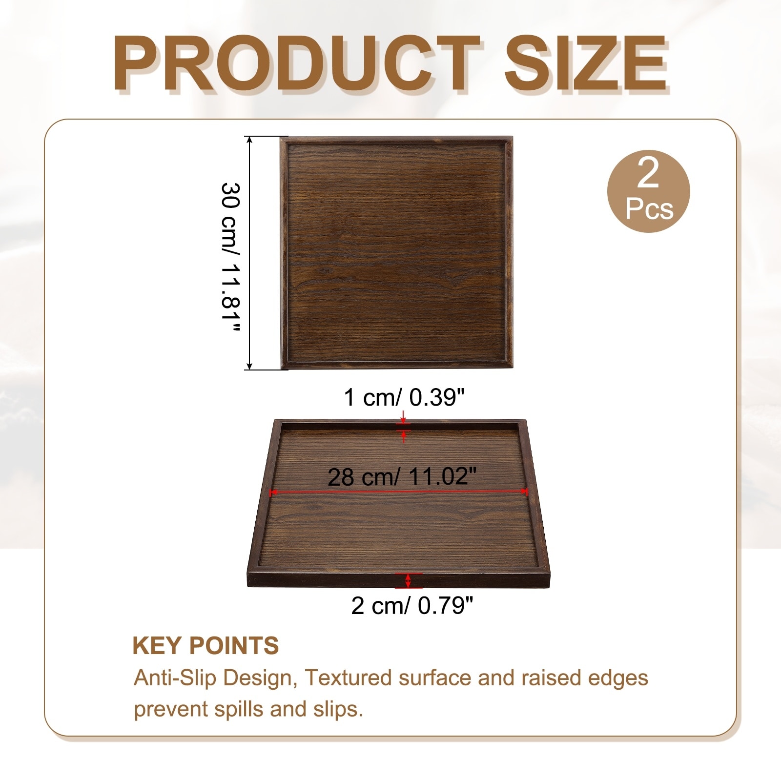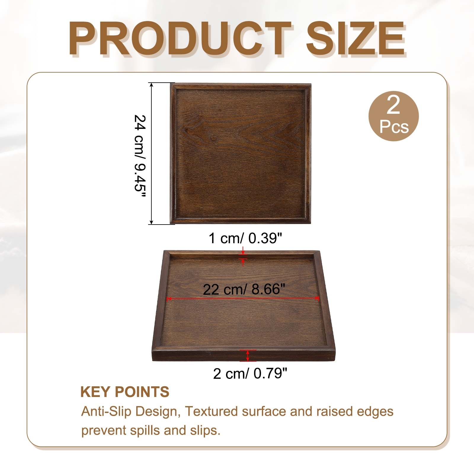 Wooden Serving Tray ,Square Decorative Platter, - Brown
