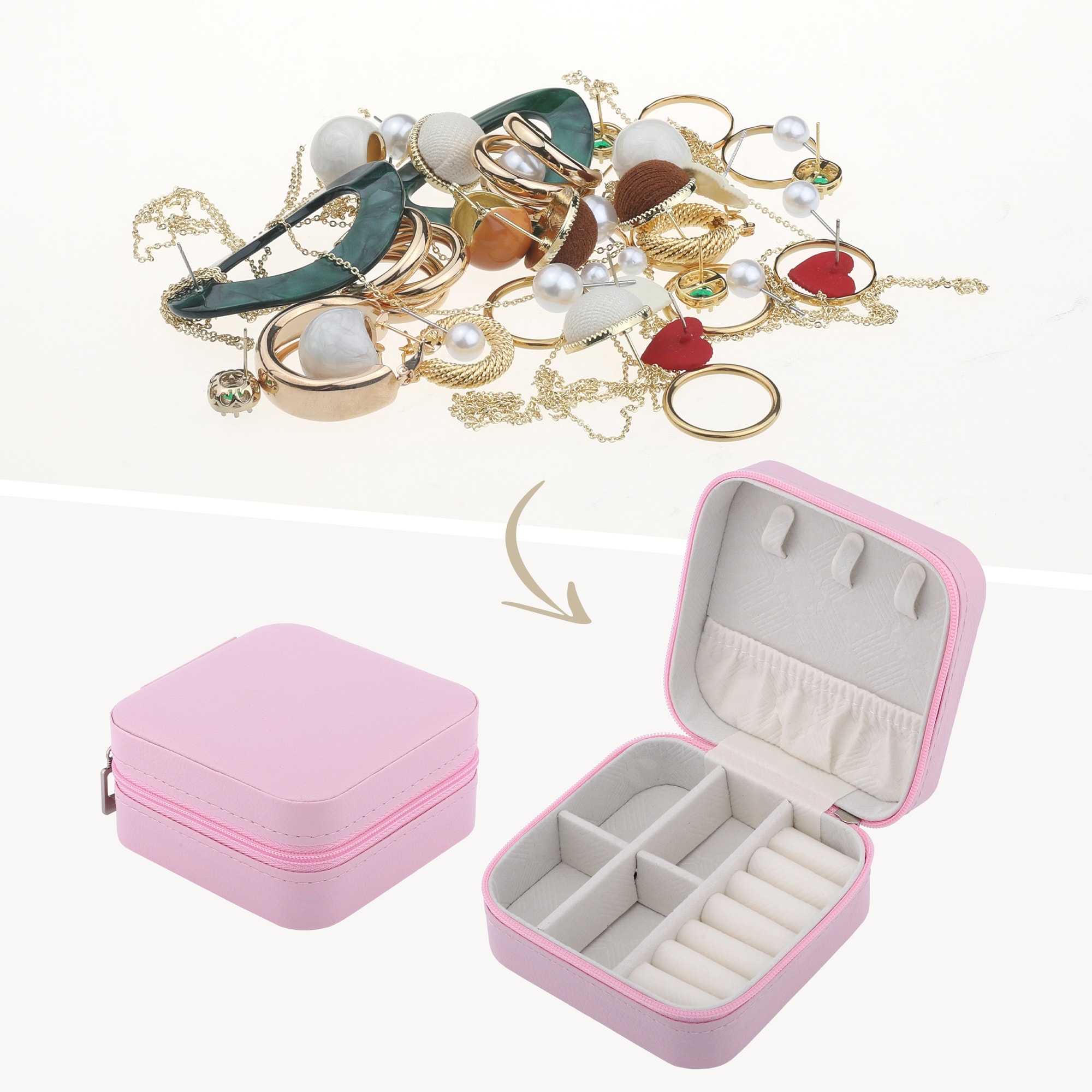 Portable Jewelry Box, Mini PU Leather Jewelry Organizer Boxes Storage Display Holder, Jewelry Case for Women 4x4x2in - 4*4*2in