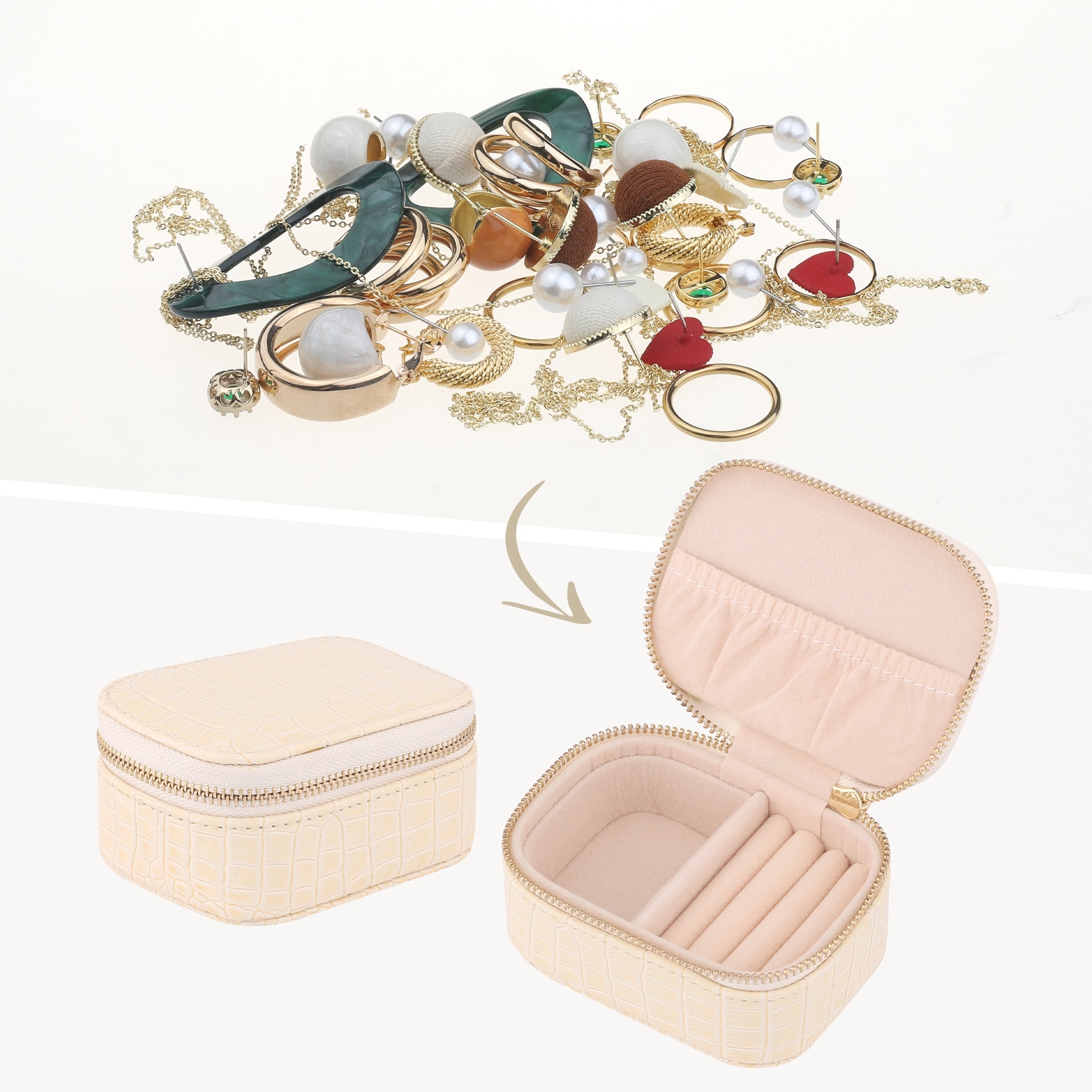 Travel Jewelry Box for Women's Gifts, Mini Portable PU Leather Jewelry Organizer Case Storage Display Holder 3.7x2.8x2in