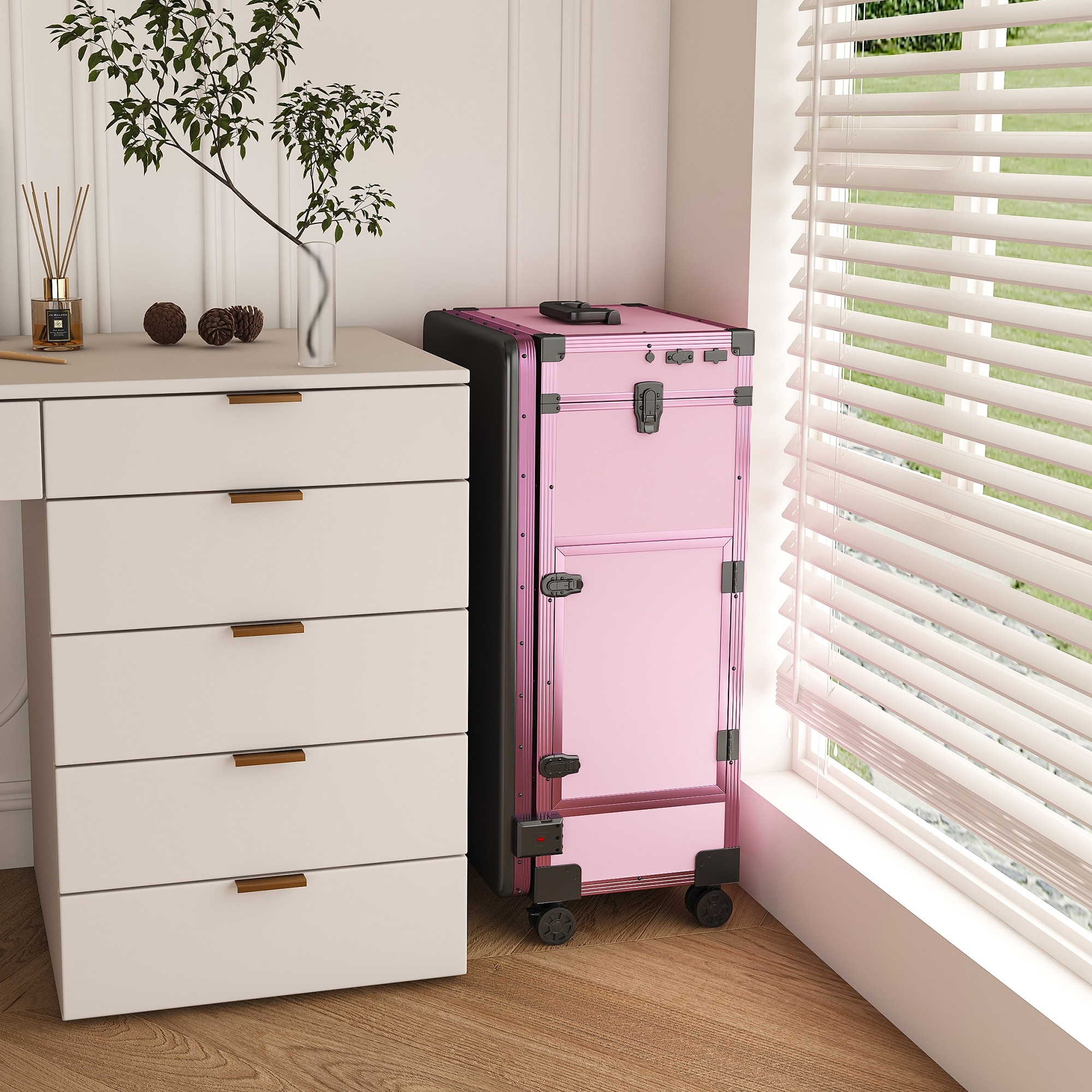 Roomfitters Portable Nail Table with LED Mirror, Lockable Drawers and Bluetooth, Folding Manicure Station on Wheels, Black