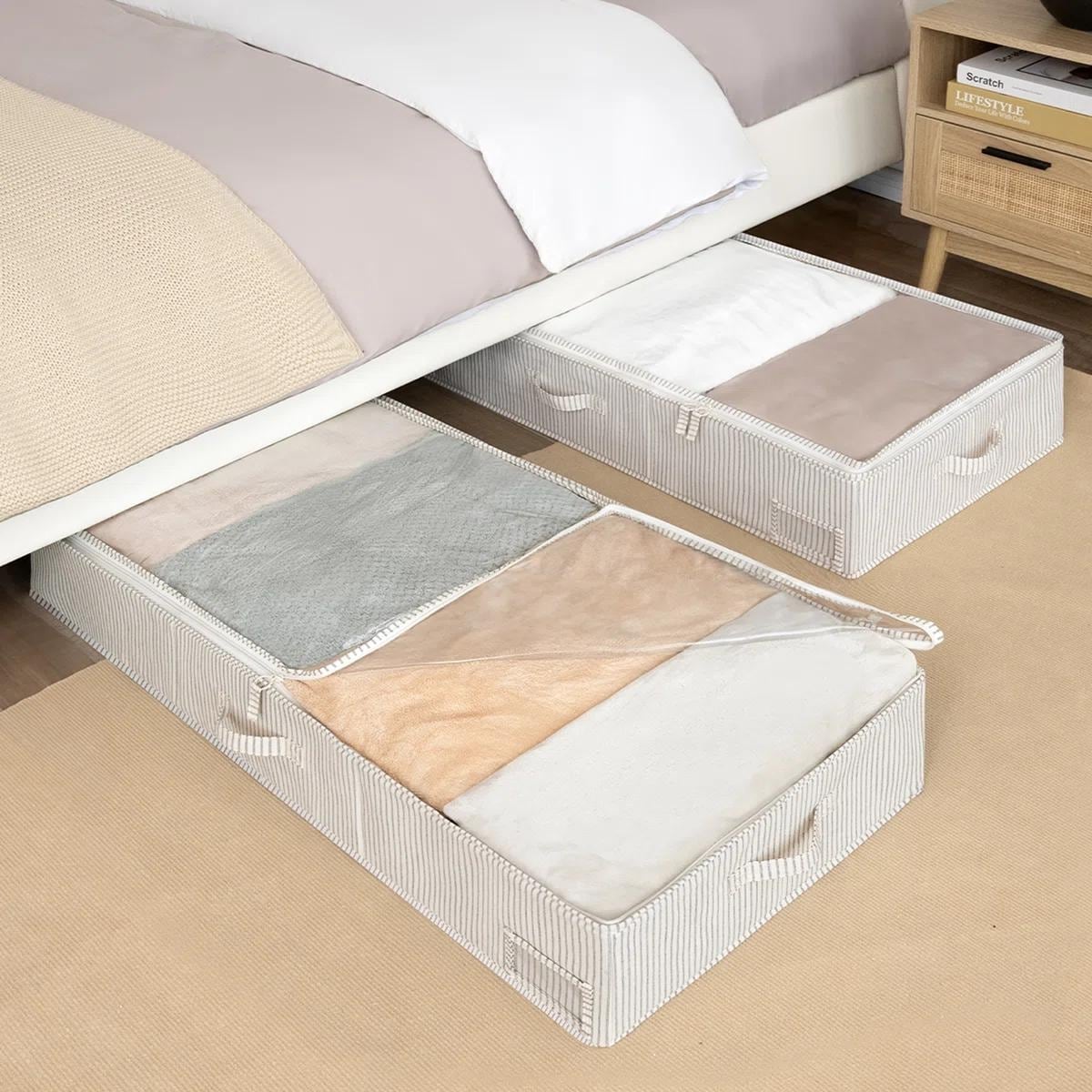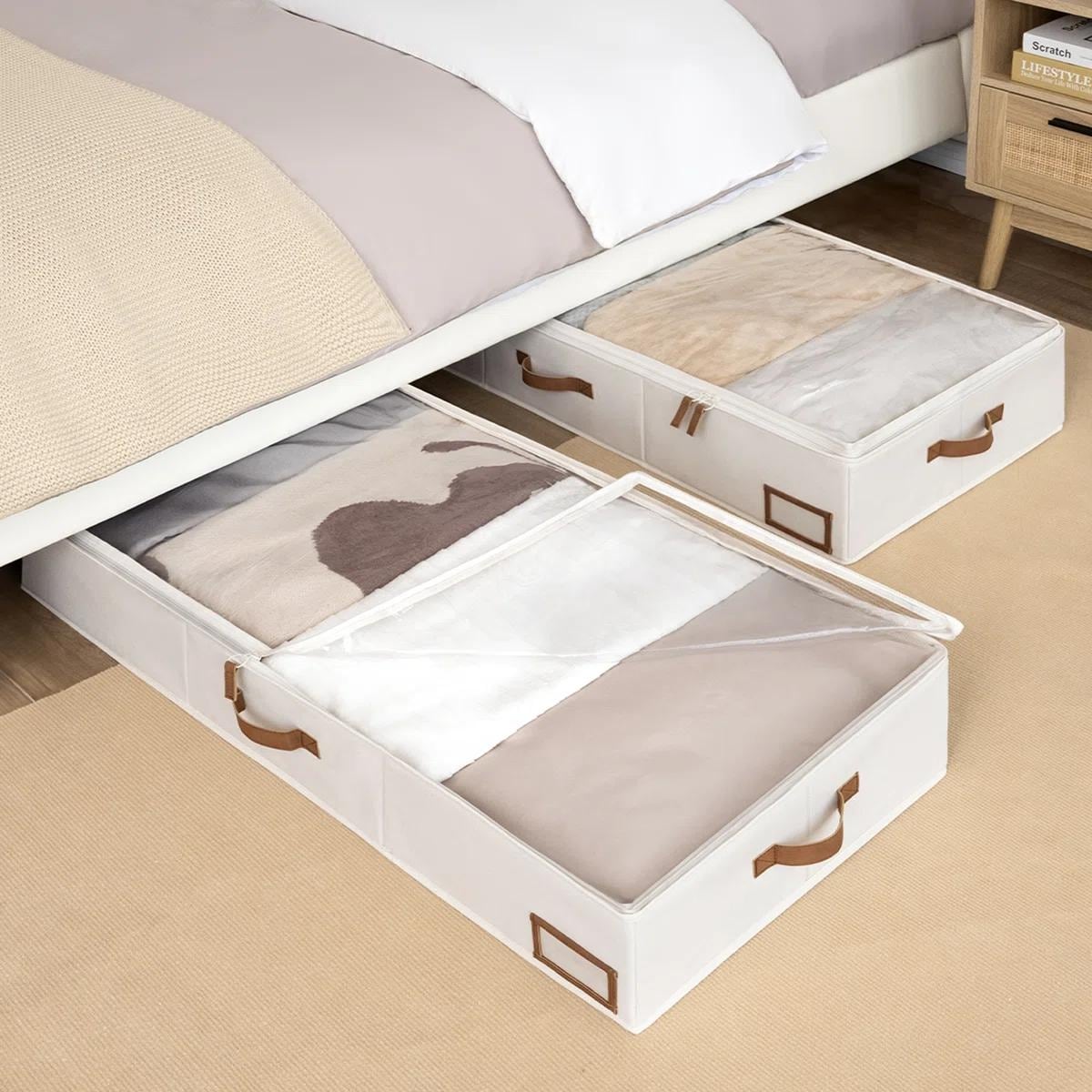Large Underbed Storage Containers with Handles and Label Holder, Fabric Underbed Bins for Clothes, Blankets, Sweaters (Set of 2)