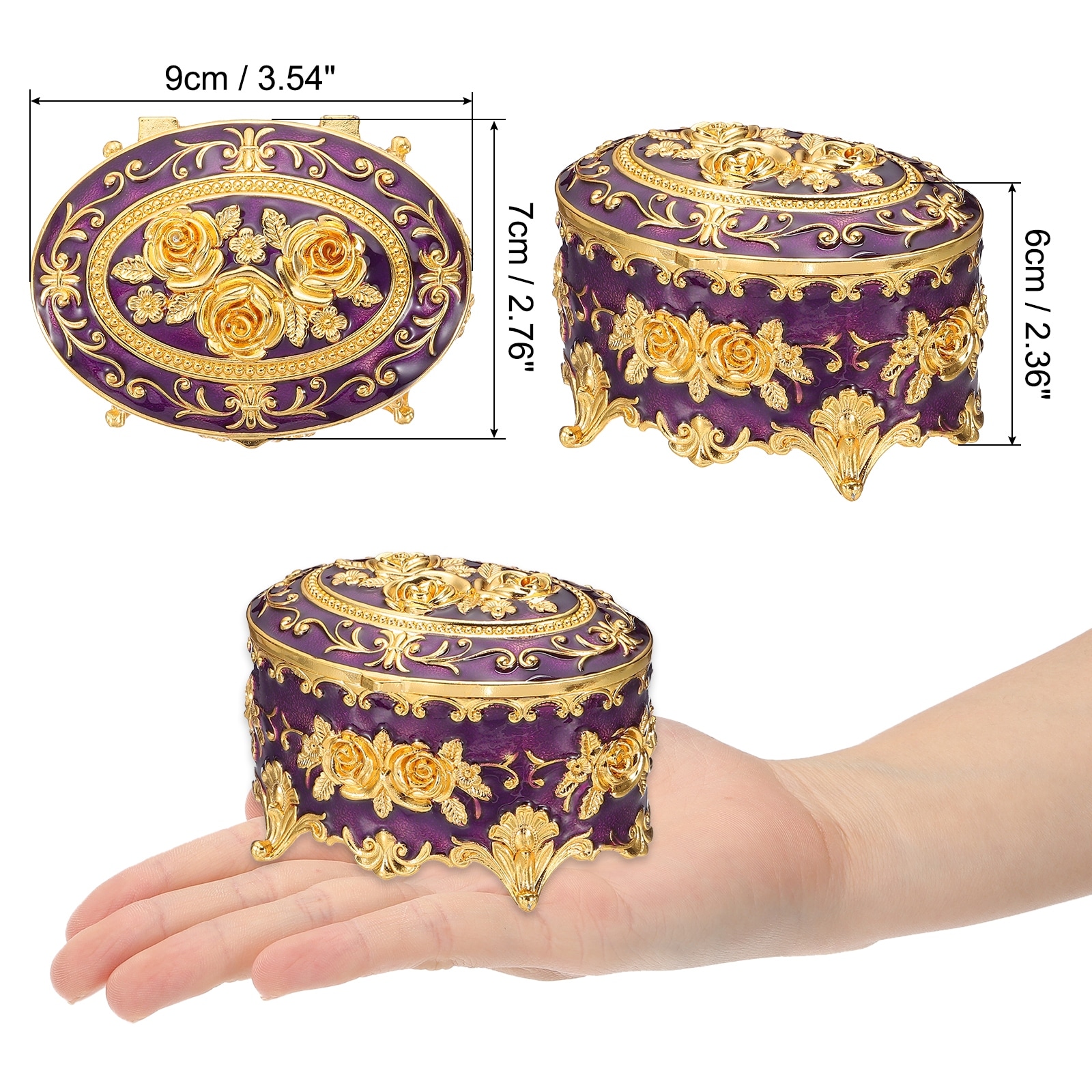 Vintage Metal Jewelry Box, Oval Trinket Organizer Box Jewelry Storage Box for Ring Earrings Necklace