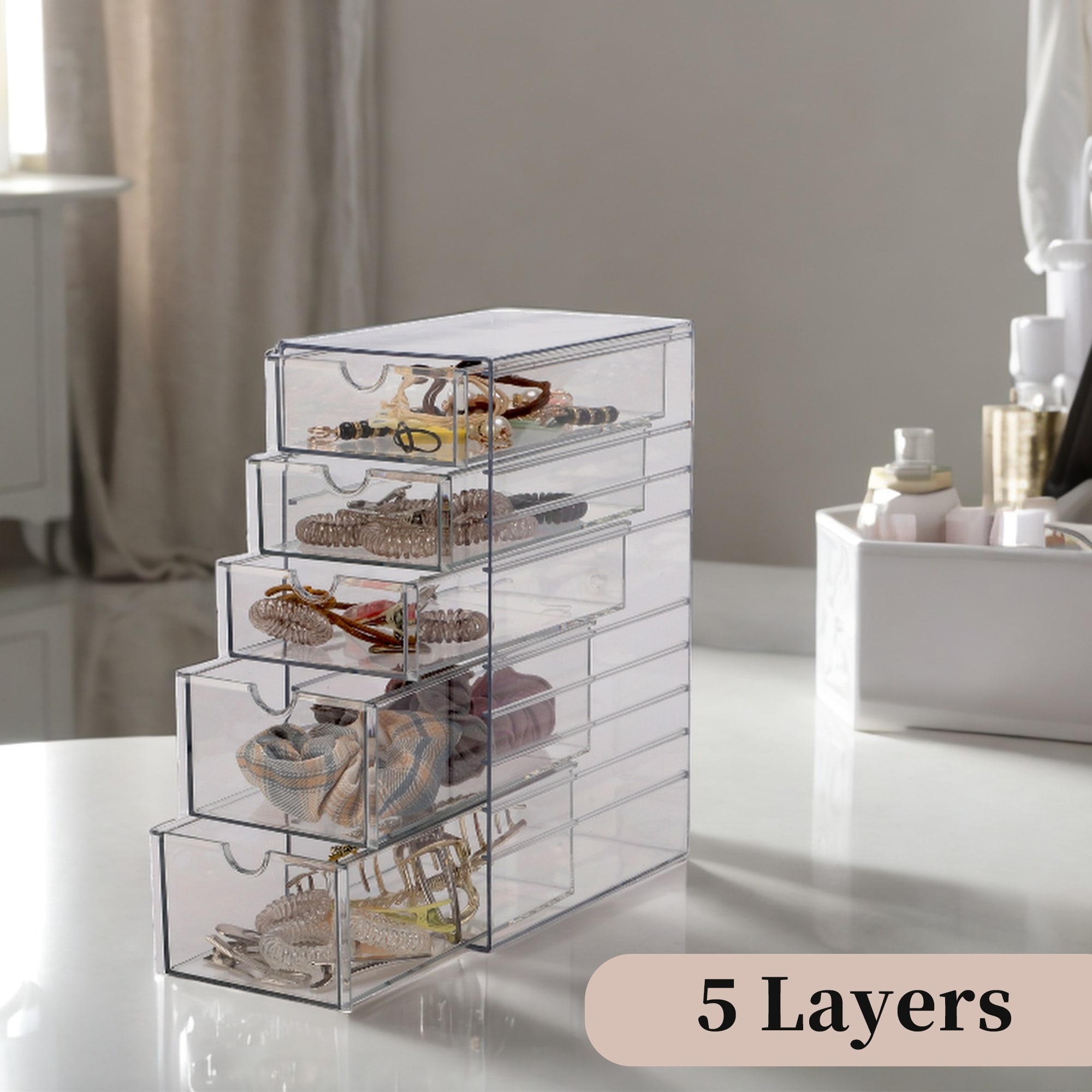 Hair Accessories Organizer Multi-layer Storage Drawers with 5 Drawers Clear - 1pcs