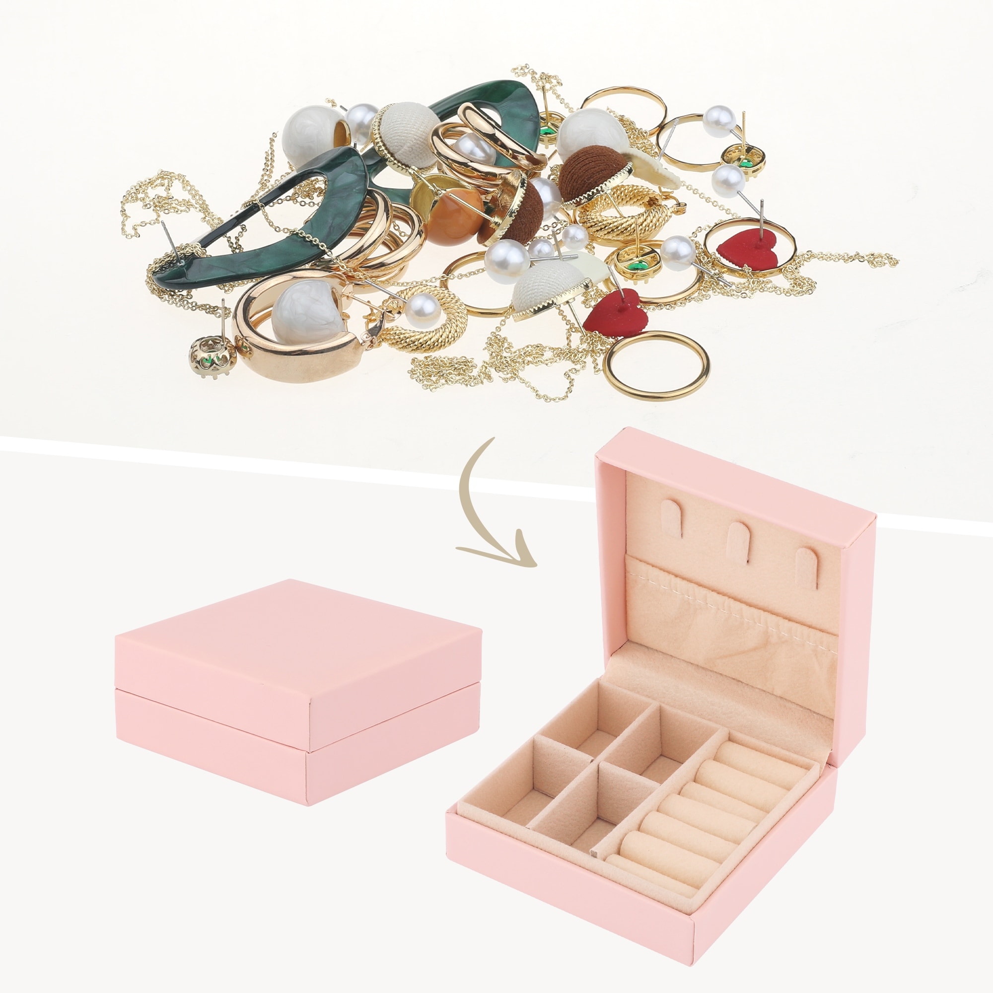 Travel Jewelry Box, Small Portable PU Leather Jewelry Organizer Case Storage Display Holder 3.5x3.5x1.5in - 3.5*3.5*1.5in