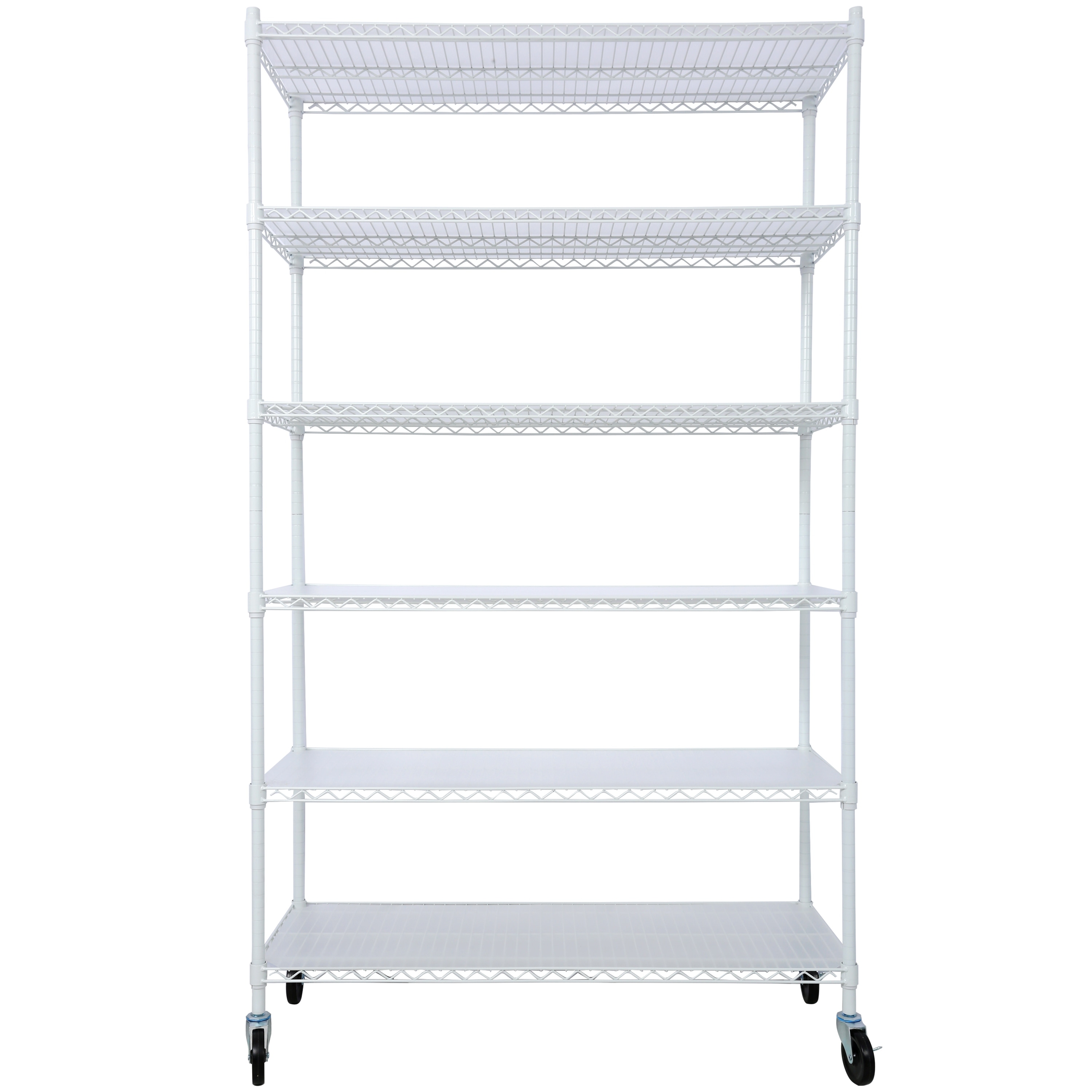 6 Tier 6000lbs Capacity NSF Metal Shelf Wire Shelving Unit,Heavy Duty Adjustable Storage Rack with Wheels & Shelf Liner