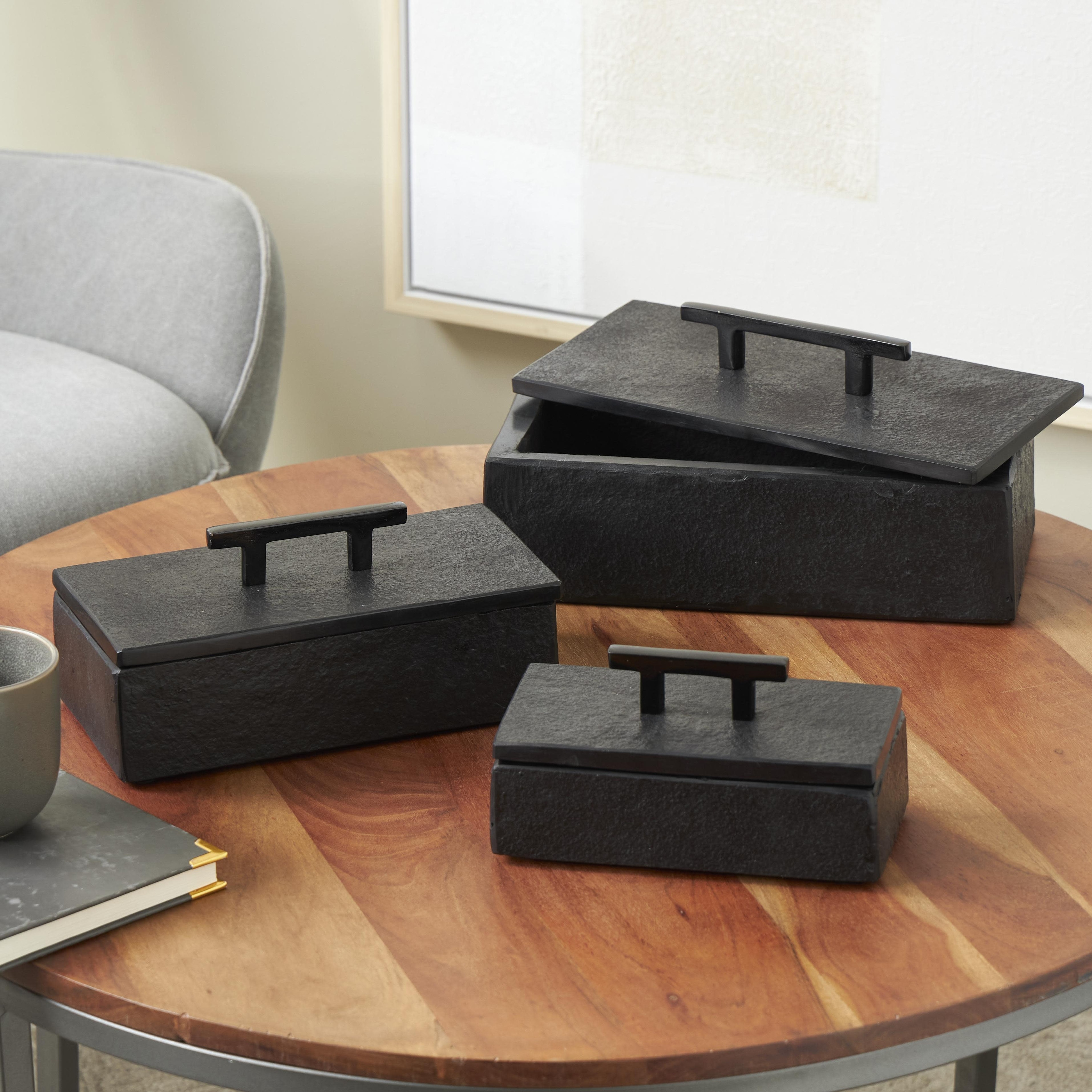 Black, Green or White Marble Box with Handles (Set of 3) - S/3 12", 10", 8"W