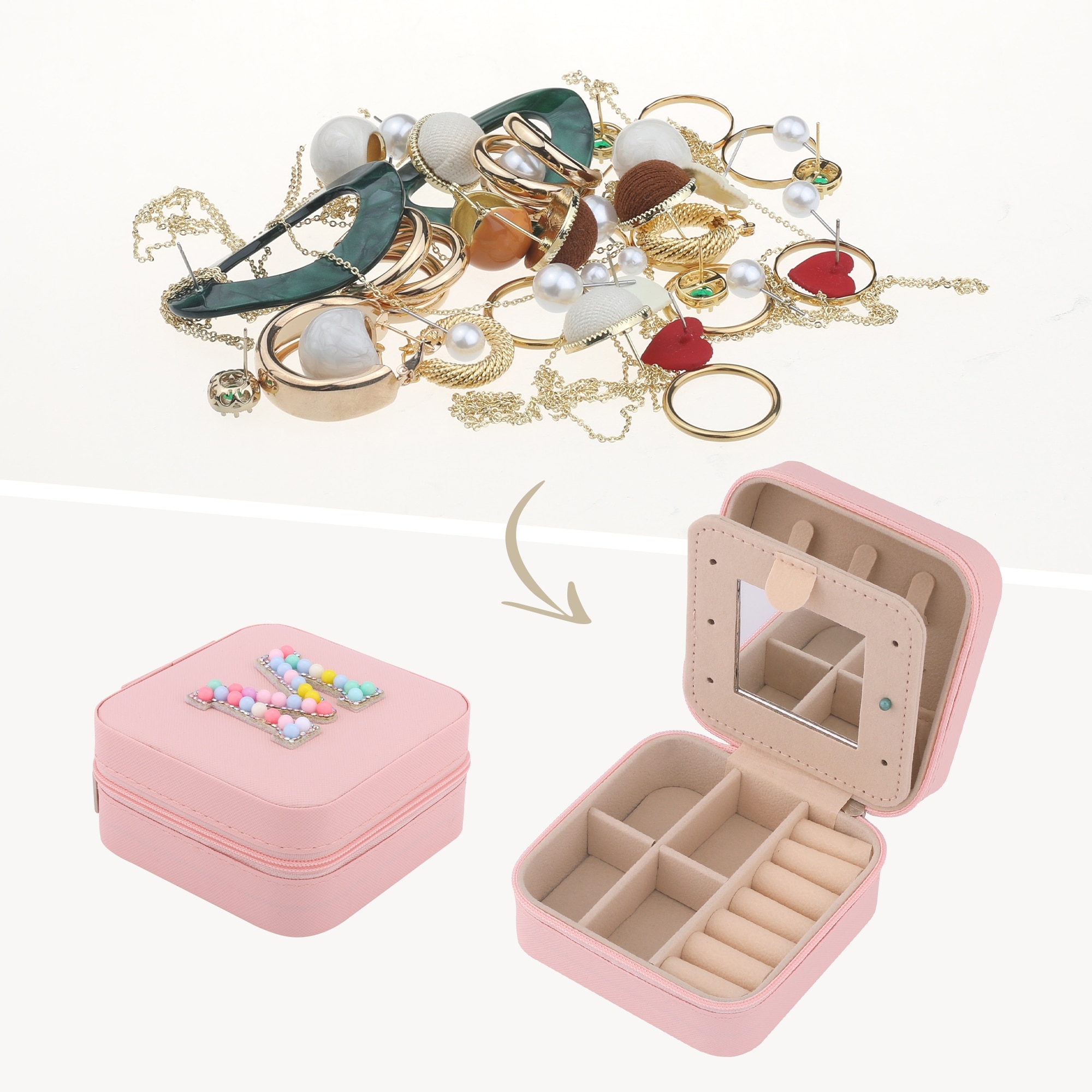 Portable Jewelry Box with Mirror, Mini PU Leather Jewelry Organizer Boxes Storage Display Holder, Jewelry Case Storage - Pink