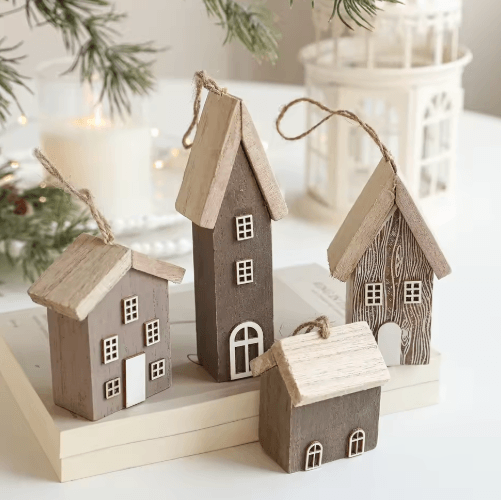 Wooden Christmas House Ornament Rustic Mini Log Cabin Tree Pendant Decor d one Size