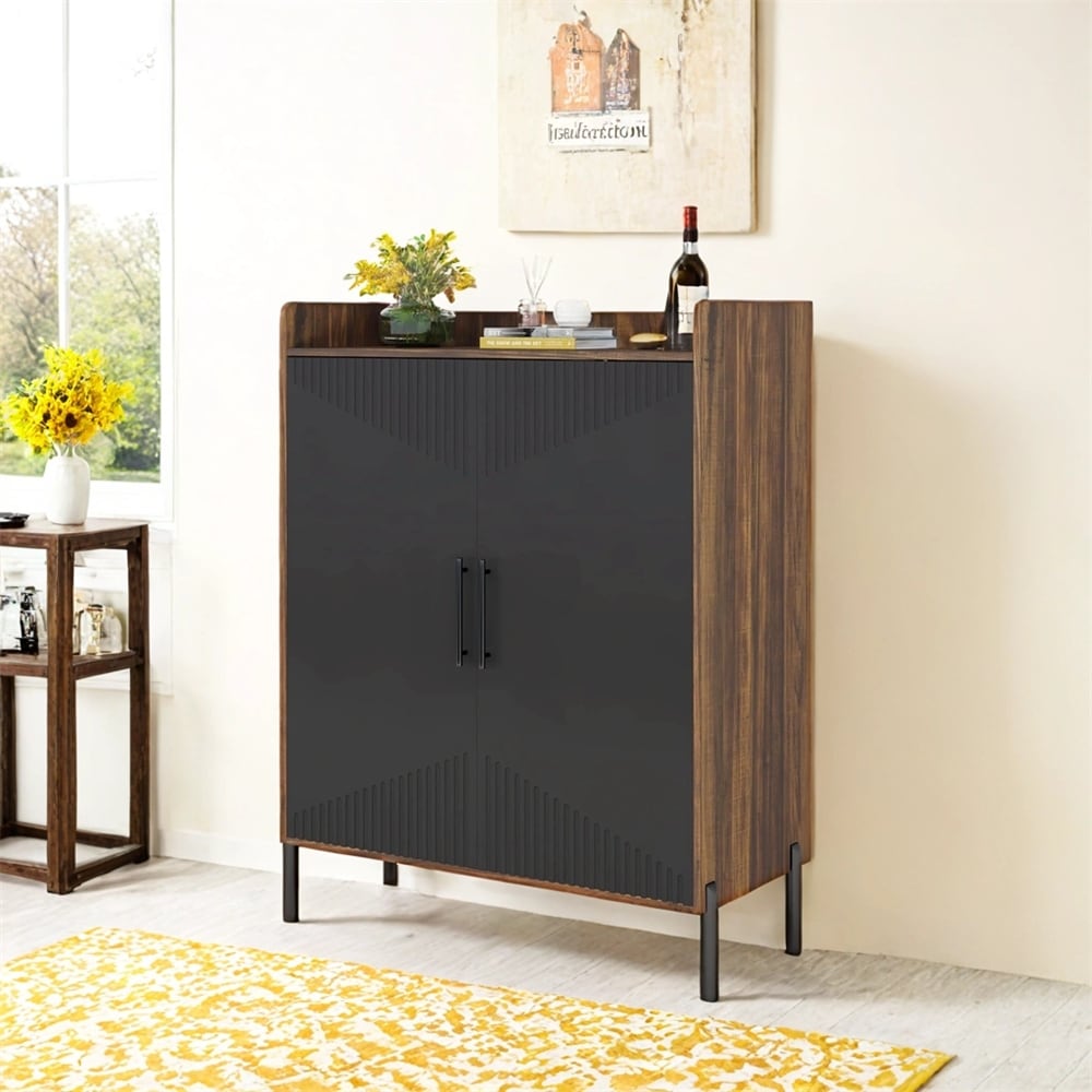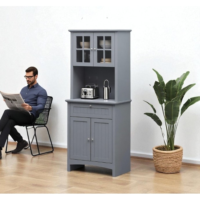 Large Kitchen Pantry Cabinet with Glass Doors and Bottom-Pull Drawers