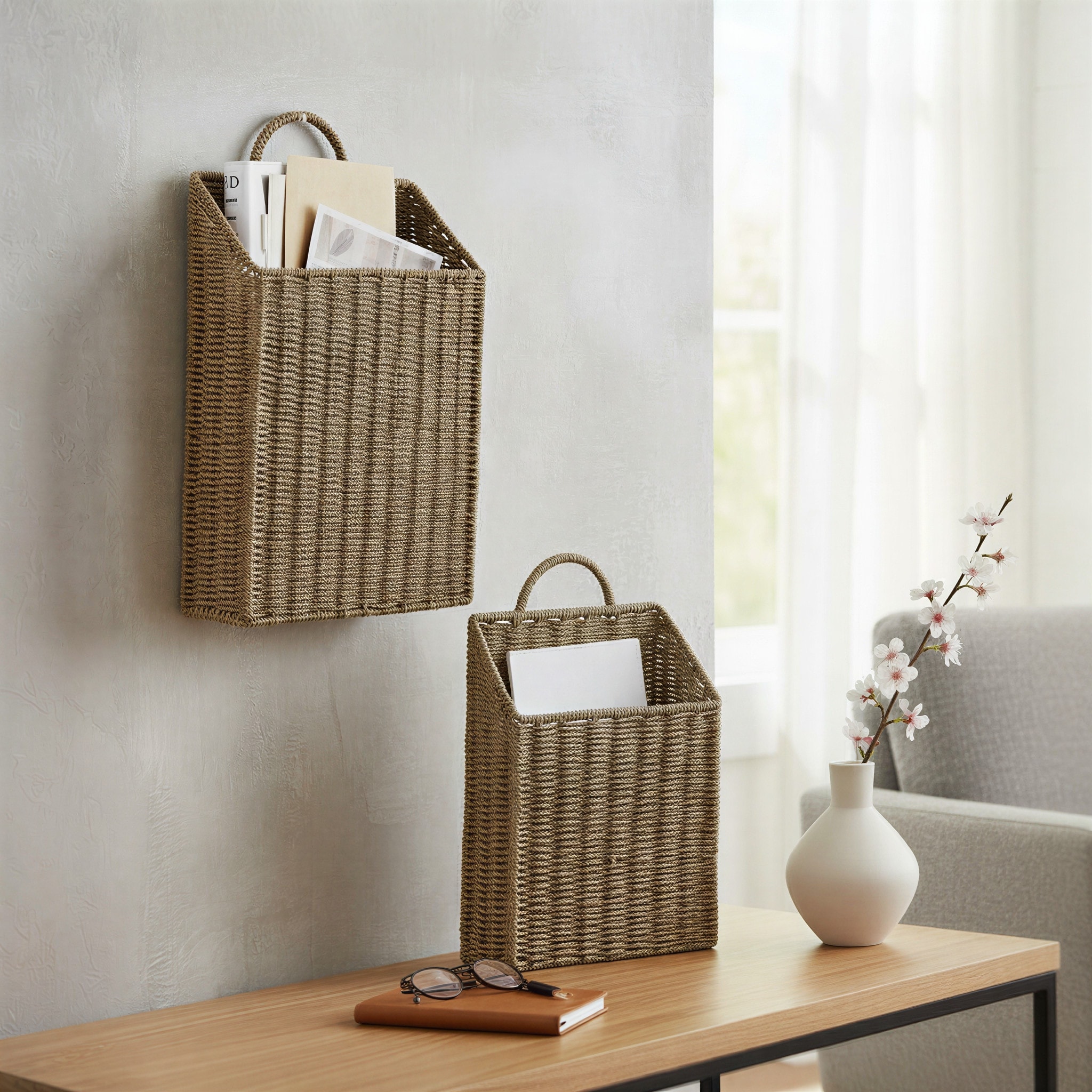Household Essentials Handwoven Seagrass Wicker Hanging Baskets
