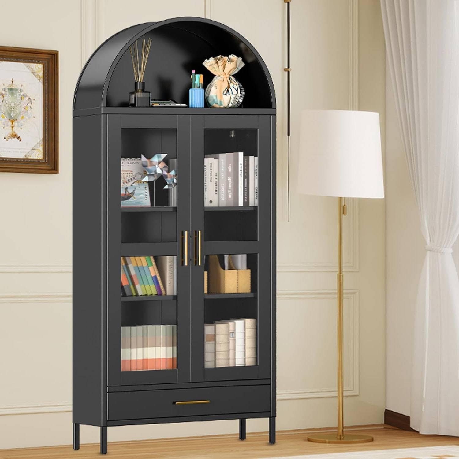 LED Strip Light Two Door Glass Cabinet Glass Display Cabinet with 4 Shelves