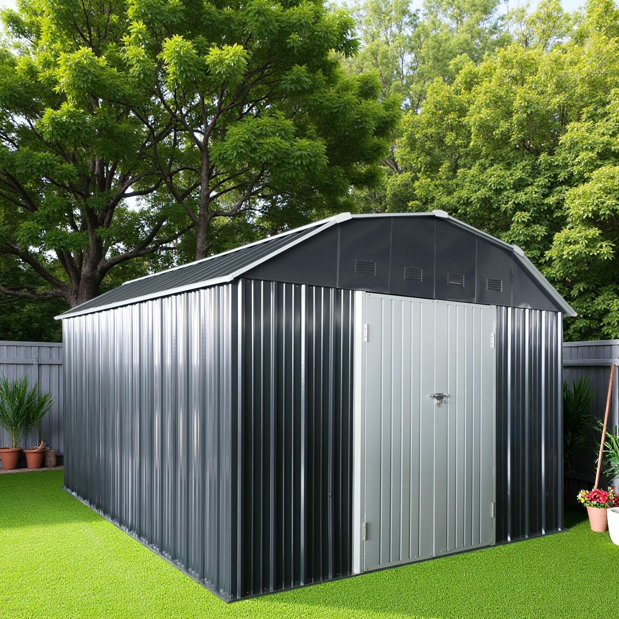 Outdoor Metal Storage Shed with Lockable Door and Two Integrated Air Vents