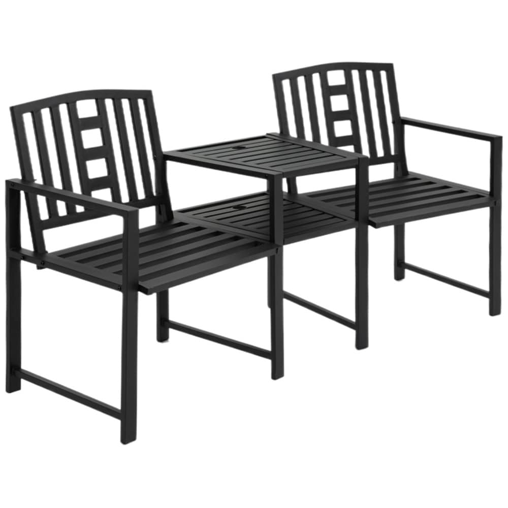 Outdoor Black Metal Garden Loveseat with Tea Table Two Seat Patio Bench for Backyard Porch and Patio - 65" L x 24" W x 33.75" H