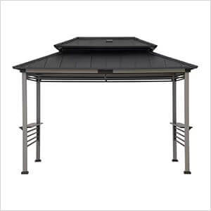 Sunjoy Group 8 x 12 Grill Gazebo with Solar Power and Shelves (Black)