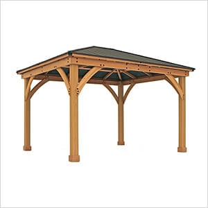 Sunjoy Group 11 x 11 Wooden Hardtop Gazebo with Ceiling Hook (Upgraded Brown Roof)
