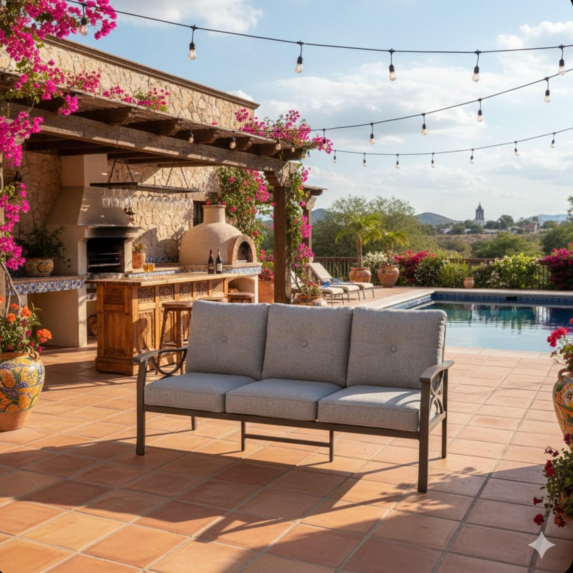 70 Inches All-Weather Metal 3-Seat Patio Sofa with Beige Cushions with Khaki Frame (Only Including Patio Chair)