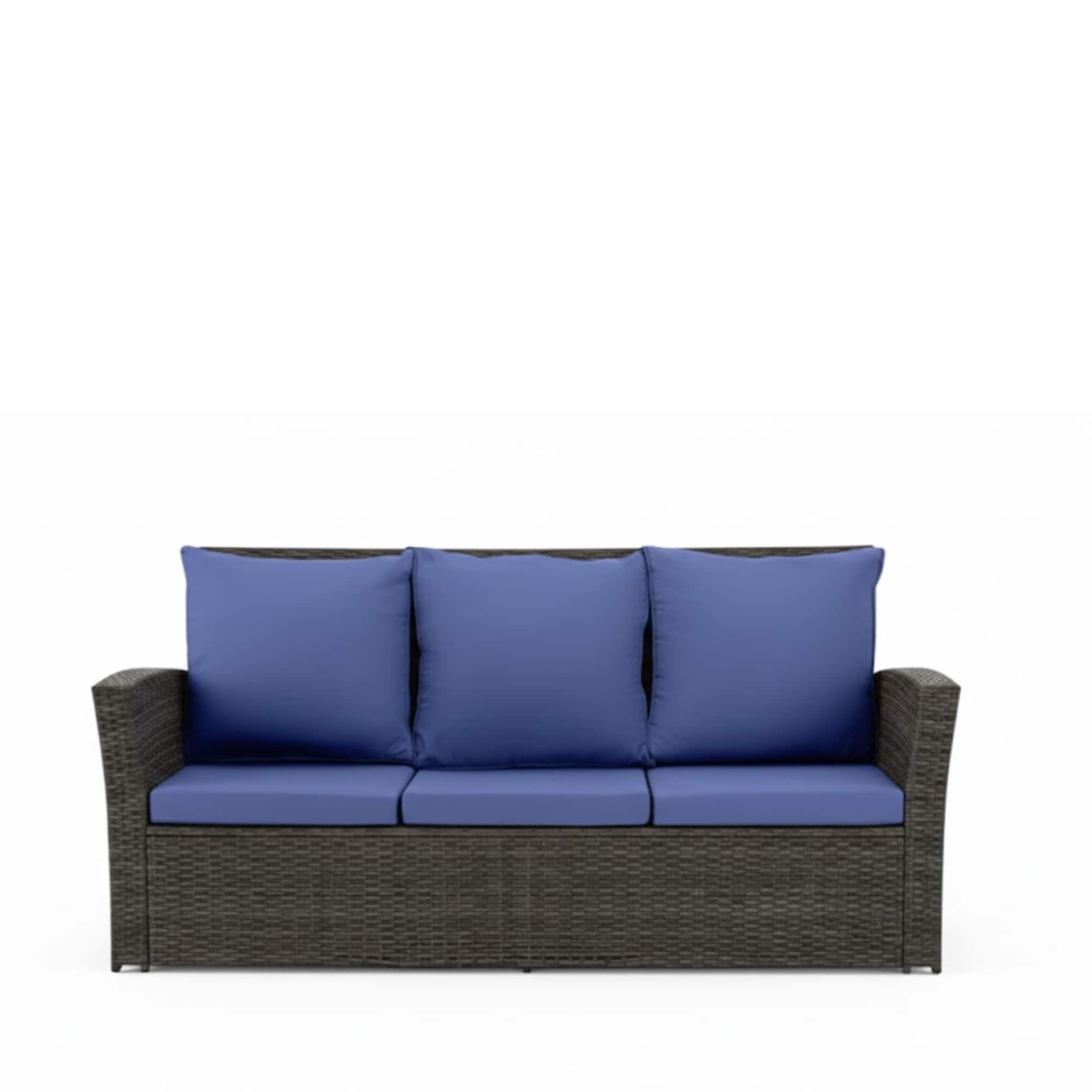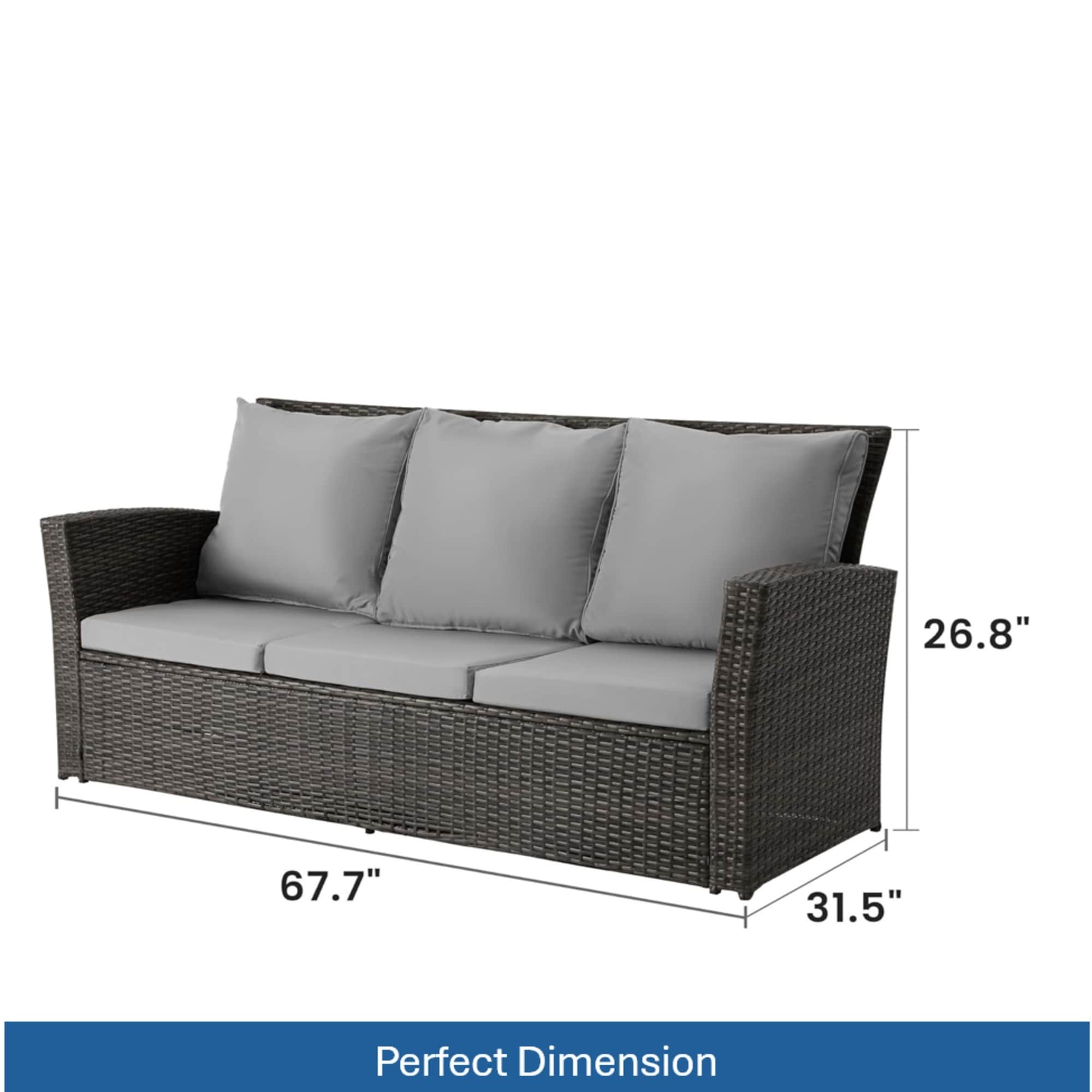 67.7" All-Weather Wicker 3-Seat Patio Sofa with Thick Gray Cushions & Black Frame (Only Including Patio Chair)