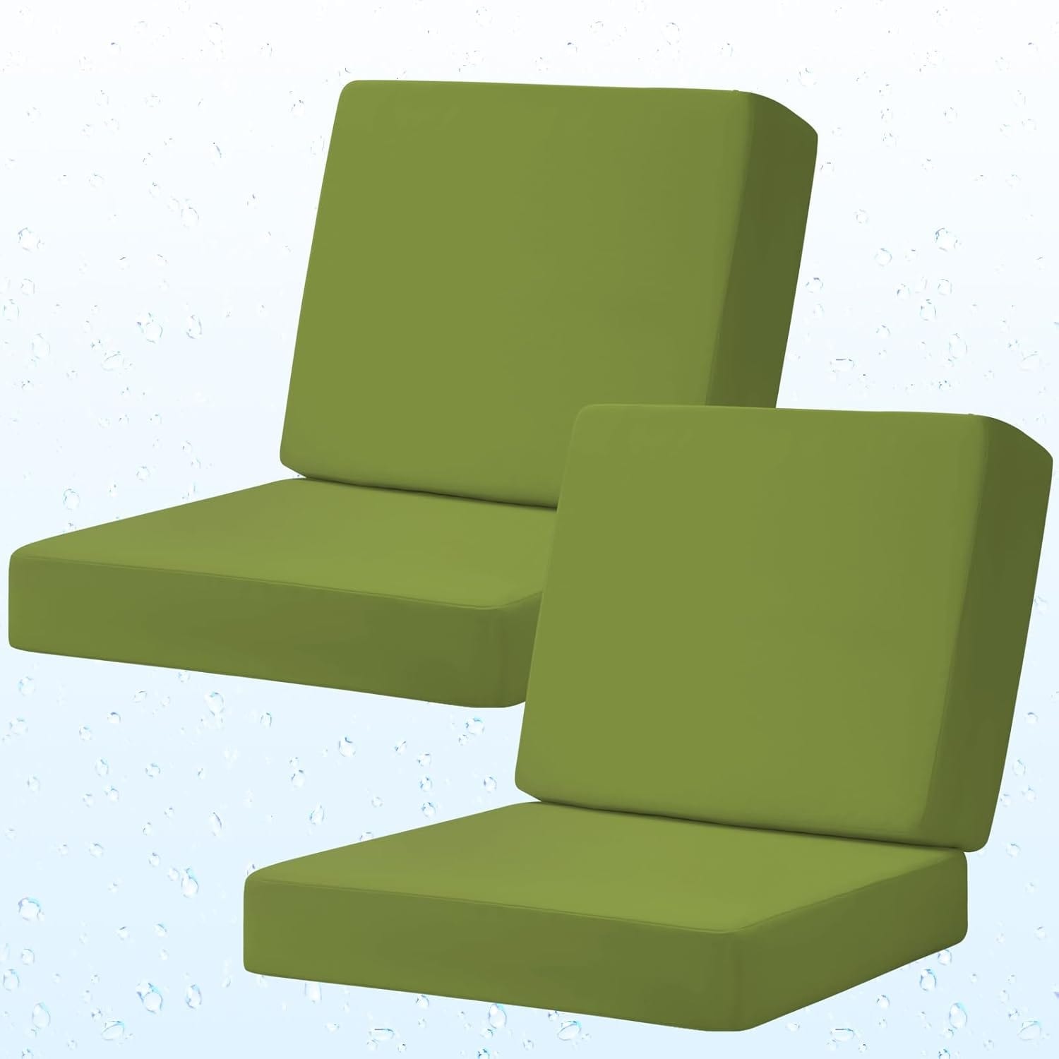 24x24 Inch Waterproof Outdoor Deep Seat Cushion Set with Ties, UV Resistant for Patio Furniture (Green, 2Pcs)